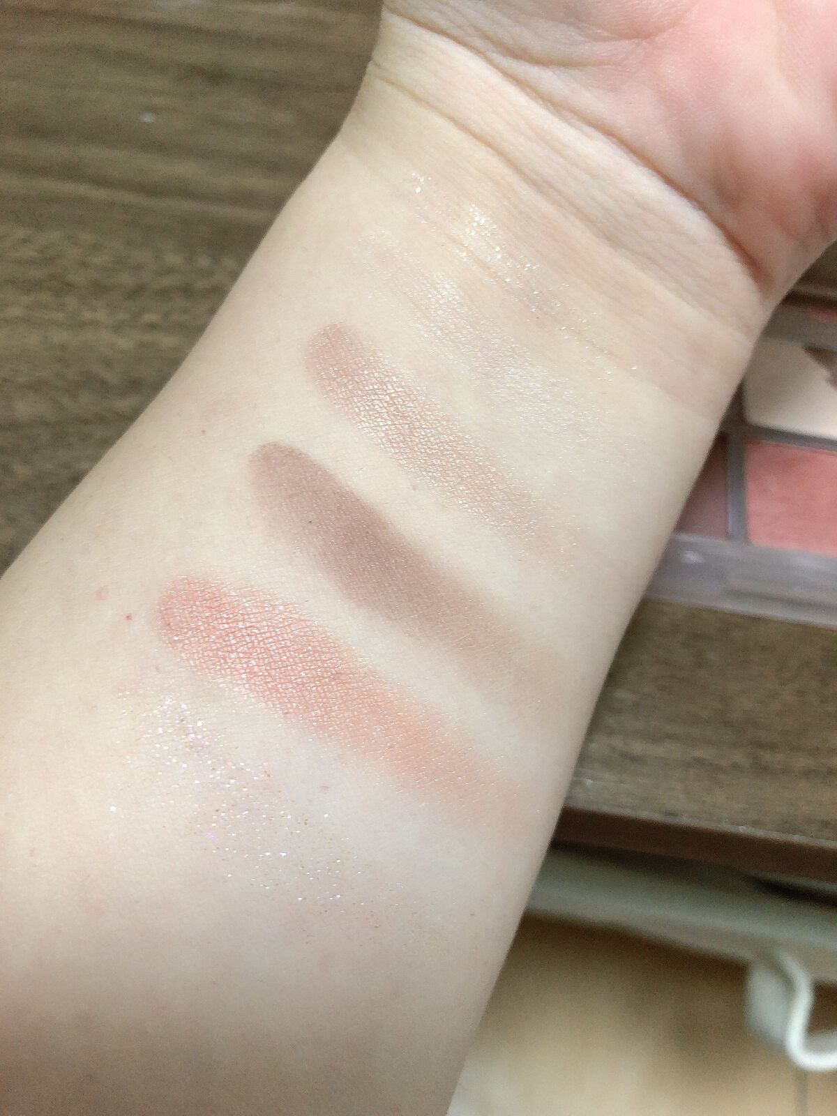 いちごみるくっぽいのと、くすみラベンダーの2パターンでアイメイクできるのは嬉しい! マットもラメも発色がいい マットは粉っぽくならない ラメはしっとり マット6色(うちラメ入り1色) ラメ4色(うち大粒1色) ベースから締め色まで揃って🥇 ラメはかなりしっとり&柔らかいです!固いと思って、結構力いれたらたくさん取れました笑 大粒ラメは、指でもブラシでも取りやすい🌟