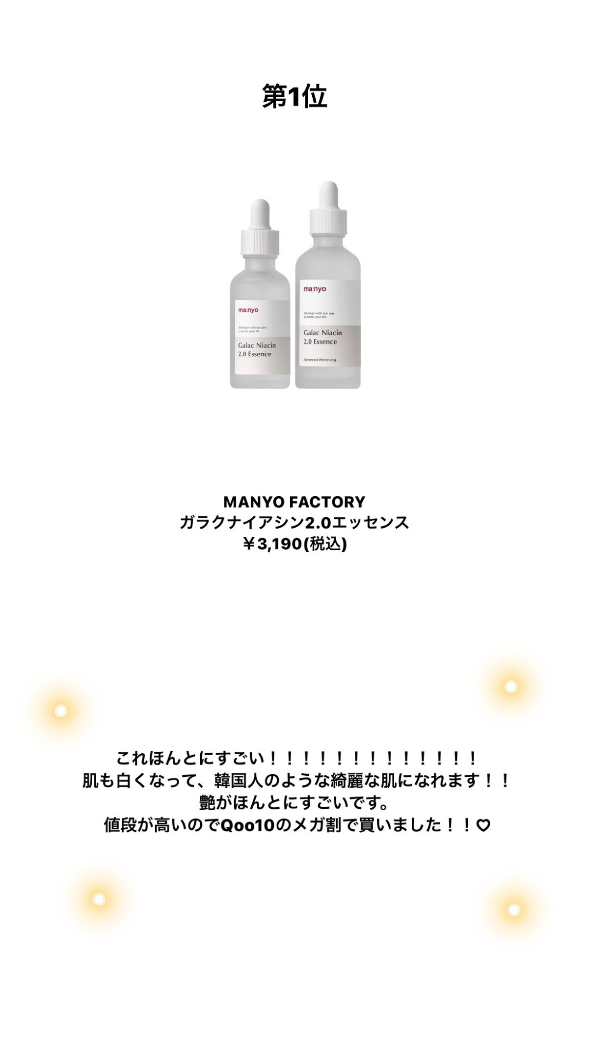 | スペシャルケアランキング第88位 | 水分感たっぷりのうるうるなエッセンスなのでベタつかず、そのあとのスキンケアやメイクを邪魔しない✨️ | 詳細を見る | |