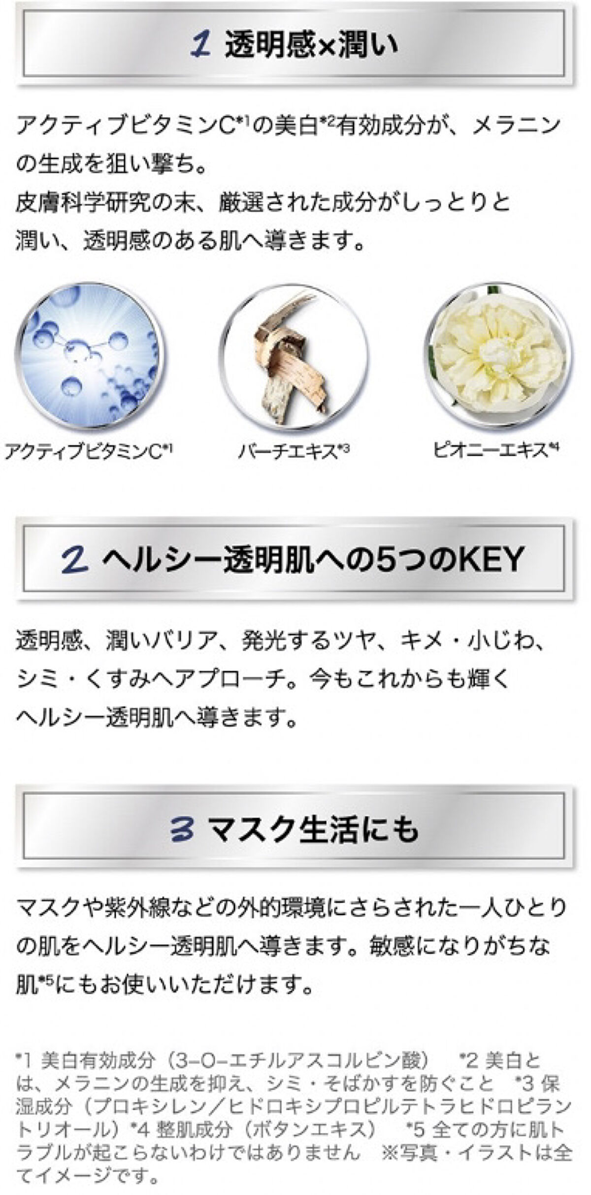- 愛され続けて8年目! ロングセラー透明美白*1美容液。 シミを防ぎながら、透明感あふれる肌へと導きます。 *メラニンの生成を抑え、シミ・そばかすを防ぎます。 肌(角質層)に素早く浸透し、高い美白*1効果と保湿効果を発揮する美白*1美容液。“アクティブC*”2、ピオニーエキス*3、ホワイトバーチ*4配合。一点の曇りもない透明美白美容液が、シミを防ぎながら、透明感あふれる潤い、すこやか透明肌へと導きます。 とろみがあり伸びが良いテクスチャーで、美白*1効果だけでなく、一年中を通して潤いを感じさせると口コミで評判なのも魅力の一つ。その独特な透明の処方を超えるものはないと、誕生から一度も手を入れずに、ファンが次々増えていくなか、2019年、新たな効果を2つ同時に新発見。 ヘルシースキンエッセンシャルズを誇るキールズならではの“皮膚をすこやかに保つ効果”として、みずみずしく潤い、キメが揃ってイキイキした肌へ導きます。また、潤い効果により乾燥による小じわをふっくらと目立たなくする*5効果も!多方面に潤い、すこやか透明肌をサポートする、皆様から愛され続ける信頼の一本です。 *1 メラニンの生成を抑え、シミ・そばかすを防ぎます。 *2 美白有効成分(3-O-エチルアスコルビン酸エキス) *3 整肌成分(ボタンエキス) *4 保湿成分(プロキシレン/ヒドロキシプロピルテトラヒドロピラントリオール *5 効能試験実証済み。