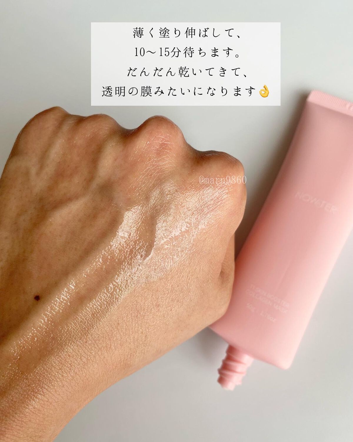 塗って乾かして剥がすコラーゲンマスクなんですが、乾くのも早く、手早く使えるのに、剥がした後の肌はひんやりヒタヒタしてて、水分を含んでるように感じる🤍 ツヤツヤでちゅるちゅる◎ わたしは、乾燥の季節、1日外にいる時とか乾燥が気になる時の朝、メイク前に使ってました♪ こういうの、厚塗りして乾かなかったり、うまく剥がせなくて失敗する事もあると思うんですが、これはスパチュラも使いやすく失敗知らず◎