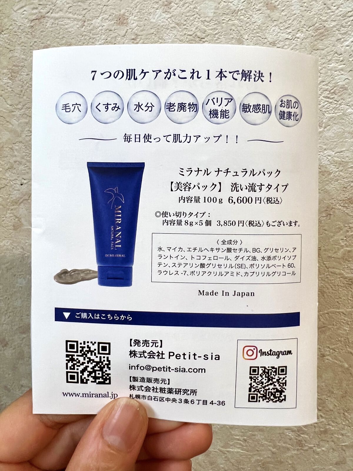 商品詳細情報MIRANAL ナチュラルパック