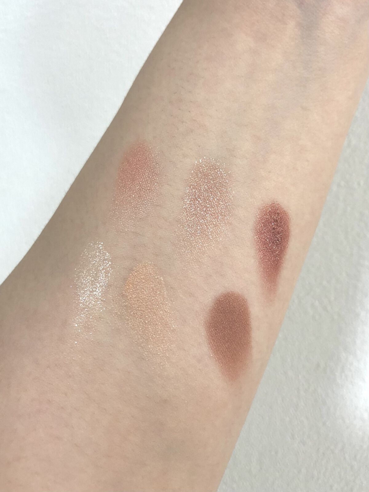 ちゃんとスウォッチしなかった私が悪いのですが、ロージーベージュという名前からもっとローズ系の色味かと思っていたら、結構黄色みが強い😭 特に右下の締め色が銅っぽいカラーかつゴールドラメで私の肌の上ではかなり浮いてしまいます なので、私は締め色は使わずその他の3色で仕上げています💪 1stブルベ 夏2ndイエベ春の私は締め色以外は使えます ただ締め色以外はかなりナチュラル発色で、しっかりメイクしたい人には不向き 自然に陰影をつけたい、ナチュラルメイクがしたい人にオススメしたいです! 左上のラメは結構ザグザグラメでした オフィスメイクにはちょっと派手すぎるかな 思っていたよりザグザグラメで私はややザラザラすると感じてしまいました ラメ飛びも普通程度にします 結論としては、締め色以外の3色をナチュラルメイクしたい時に使えそう💪 でもリピはないかなー 購入検討中の方の参考になれば嬉しいです