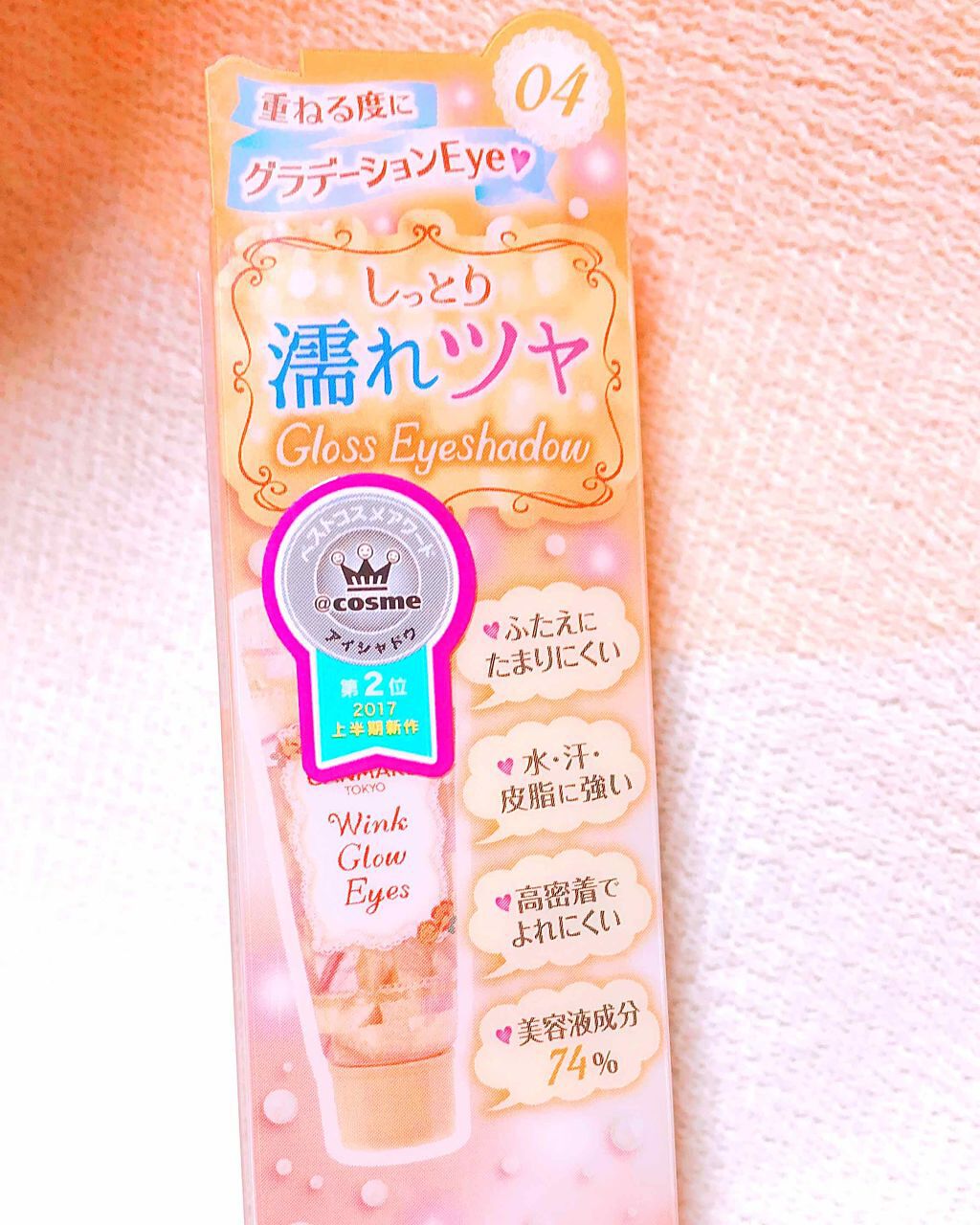 - しっとり濡れたように上品にツヤめくグロスシャドウ これひとつで透明感あふれる色っぽいツヤまぶたに カラーを重ねるほどに発色がUPするから、グラデーションも簡単に楽しめます! 持ち歩きやすいチューブタイプ 美容液成分、ビタミンC誘導体配合