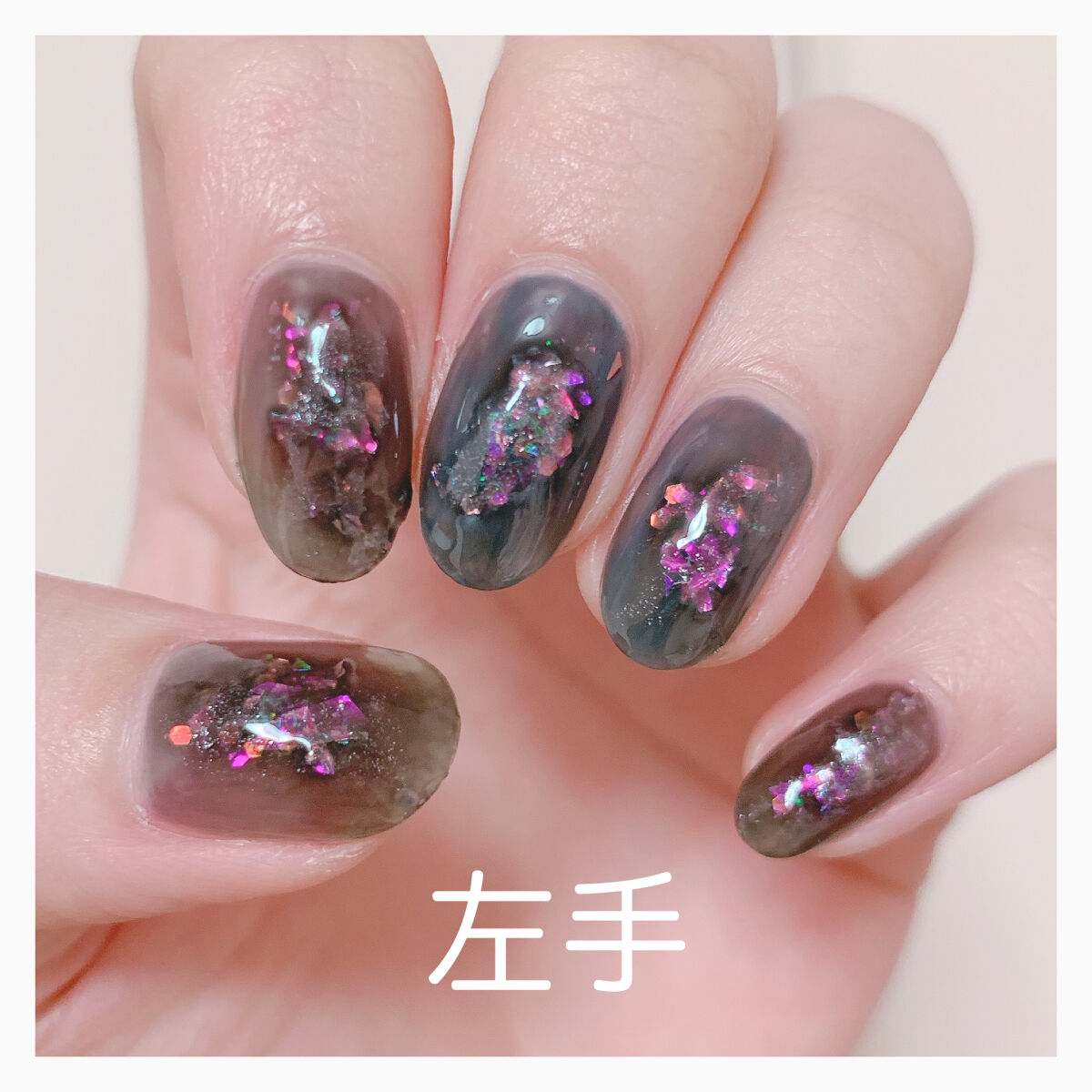 たまにはこんなのもいいなと思い、非対称で好きな色味をつかいました。5点使用の税込550円でできます。サンリオネイルのナイトシルバーとナイトゴールドのマニキュアが好きで使いたくて、右手はそれに合いそうなダークグレーの色をつかいました!!ナイトゴ...