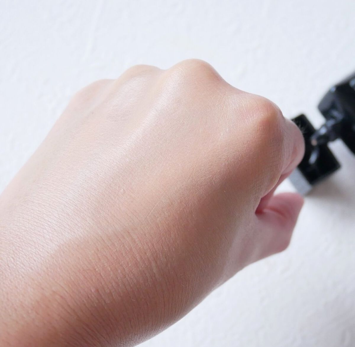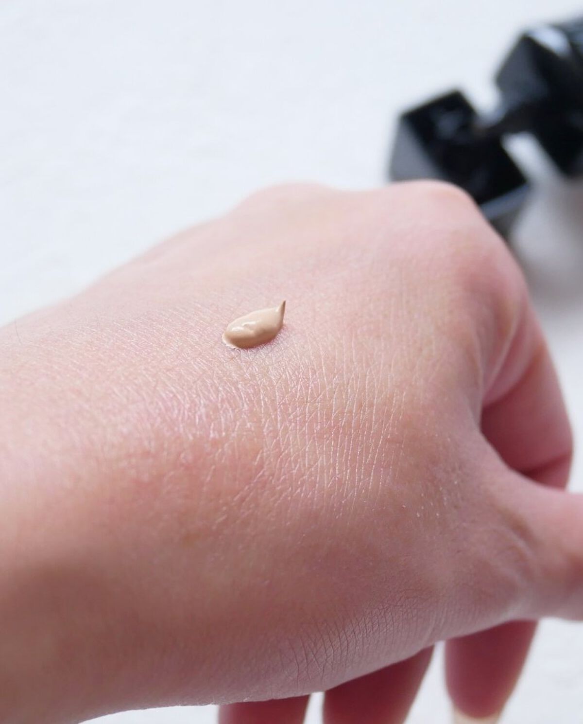 - 成分:水、シクロペンタシロキサン、酸化チタン、メトキシケイヒ酸エチルヘキシル、ミネラルオイル、DPG、イソステアリン酸ソルビタン、ジフェニルシロキシフェニルトリメチコン、グリセリン、トリベヘニン、ジメチコン、(ジメチコン/ビニルジメチコン)クロスポリマー、マルチトール、シリカ、塩化Na、トリメチルシロキシケイ酸、酸化亜鉛、水酸化Al、水添レシチン、含水シリカ、テトライソステアリン酸ジペンタエリスリチル、オリーブ果実油、アーモンド油、ホホバ種子油、メチルパラベン、フェノキシエタノール、(+/-)タルク、酸化鉄