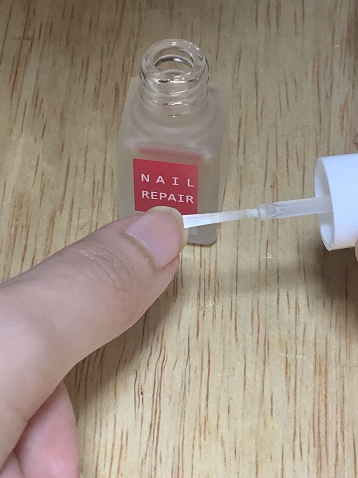 マニキュアのように塗るネイル美容液 近所の薬局で売ってていました 爪の縦線がとても気になって乾燥も気になっていました すぐ乾きます 親指の爪以外は、凸凹した縦線がなだらかになってつやが出てきたように思いました