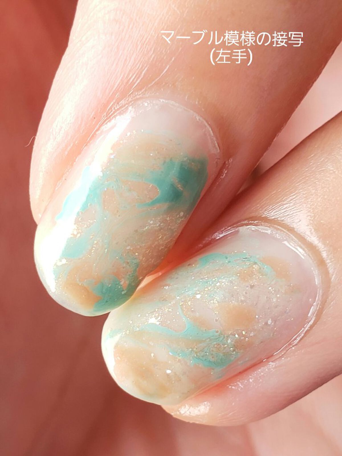 もうこの'レディカーキ'と'ミルクシロップ'の組み合わせは本当に可愛く仕上がるので全力でおすすめしたい!!! '親指' '中指' '薬指'の点置き塗りは、ポンポンとスタンプのようにのせていけば大丈夫です◎若干雑でもOKなので不器用さんでも挑戦しやすいデザインだと思います🫖