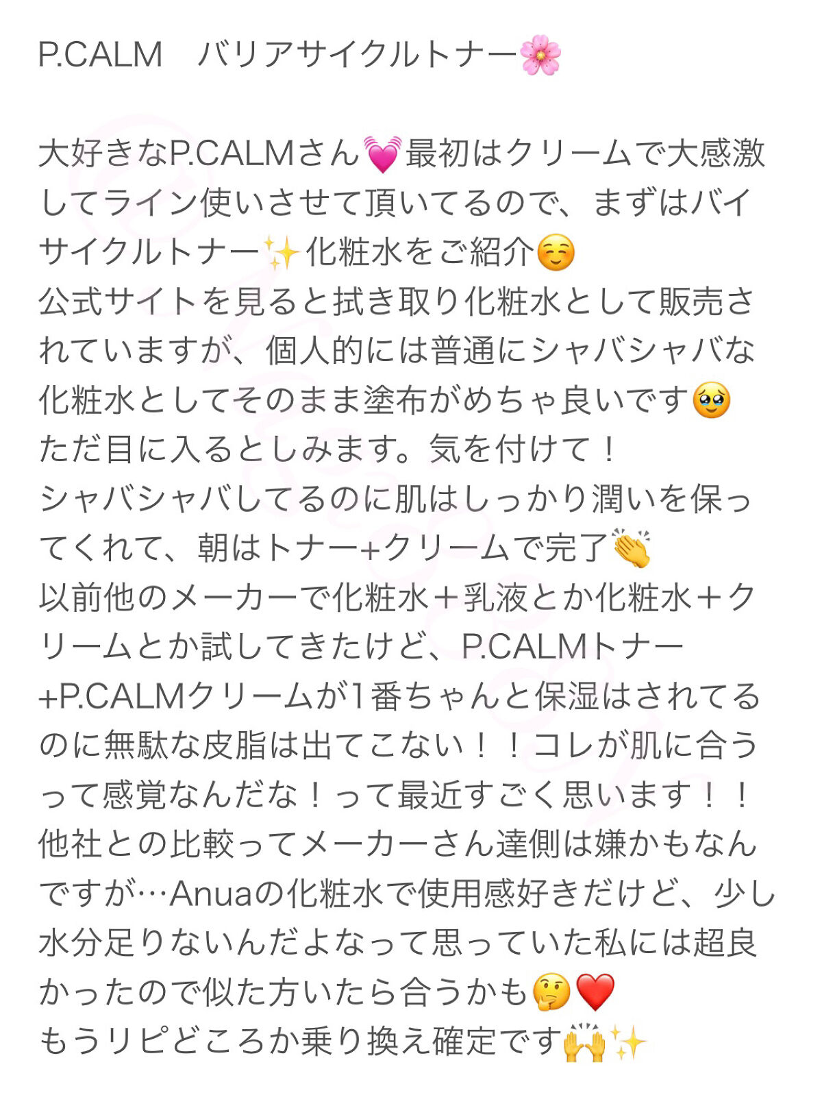 #PRP.CALM様よりご提供いただきました!*バリアサイクルトナー悩み抱える方が多い毛穴・肌トラブルの原因となる皮脂の集中ケアに✨敏感肌向けの5つの成分を配合🤍グアイズレンマデカソサイドオオバコエキスハマメリス水月桂樹葉エキスそしてP.CA...