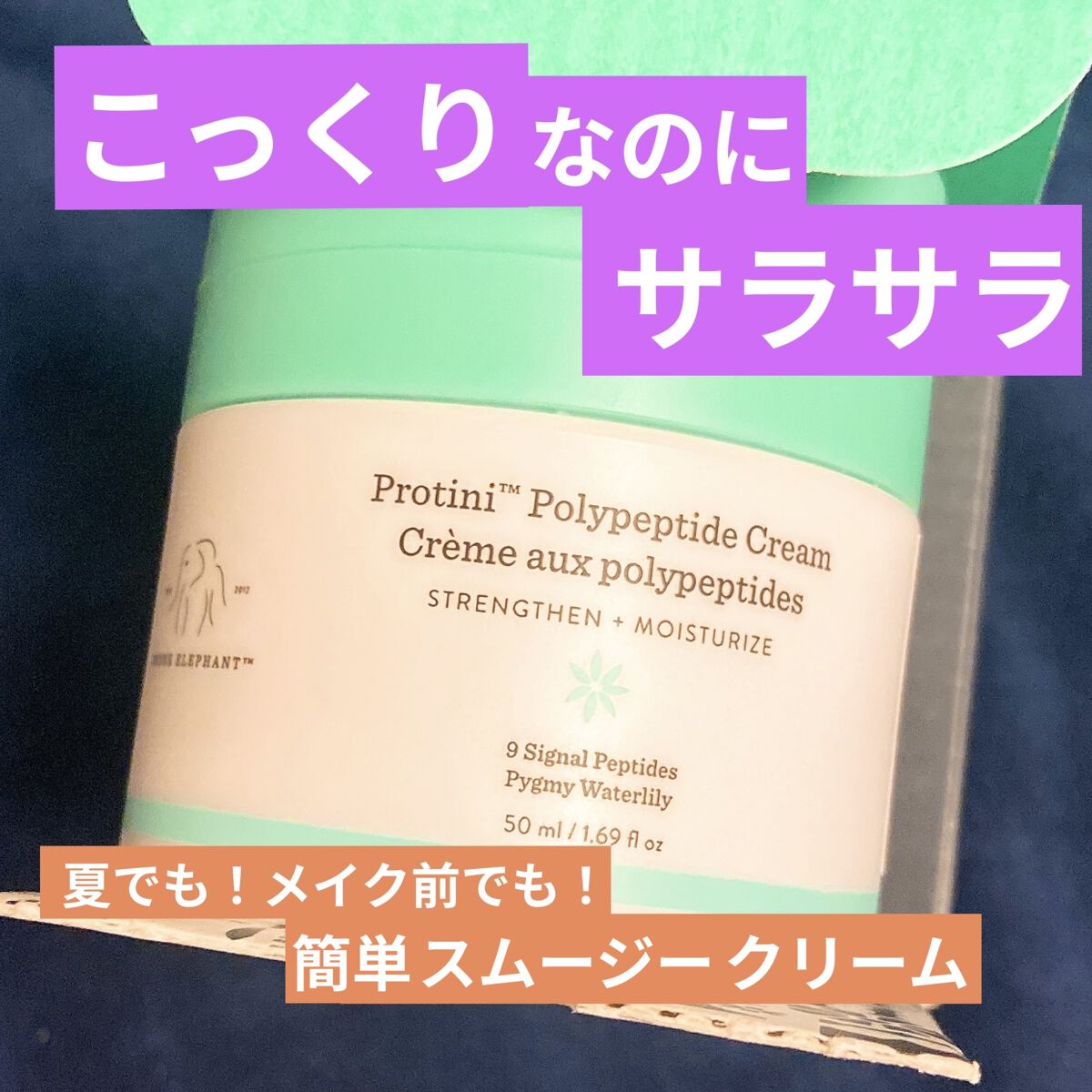 ドランクエレファント プロティニポリペプチドクリーム久しぶりに朝こちらの、クリームを使用🌿ペプチドクリームで保湿特化タイプ!濃厚でこっくりだけどベタつかないしっとりテクスチャー🫧メイクもすぐできるからオススメ♡パケットも可愛い🐘🤍#ドランクエ...