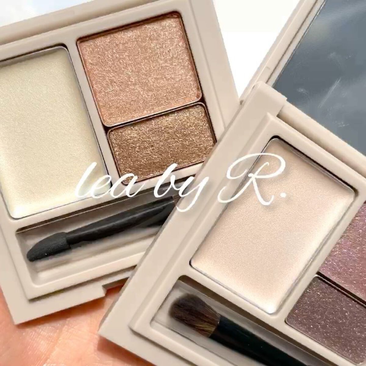 アルモニーアイズは2色で仕上げるのでテクニック要らずで、誰でも綺麗なグラデーションが出来るのが魅力🥺✨ ブラウンベースのカラーが豊富🙆♀️締め色がないので程よい抜け感が出ます🙌 キラキラしすぎない上品なパール感が本当に使いやすいですよ❤️ 3850円という価格も嬉しい✨ 左側のカラーを二重幅にのせてから、右側のカラーをアイホール全体にのせるだけ😊