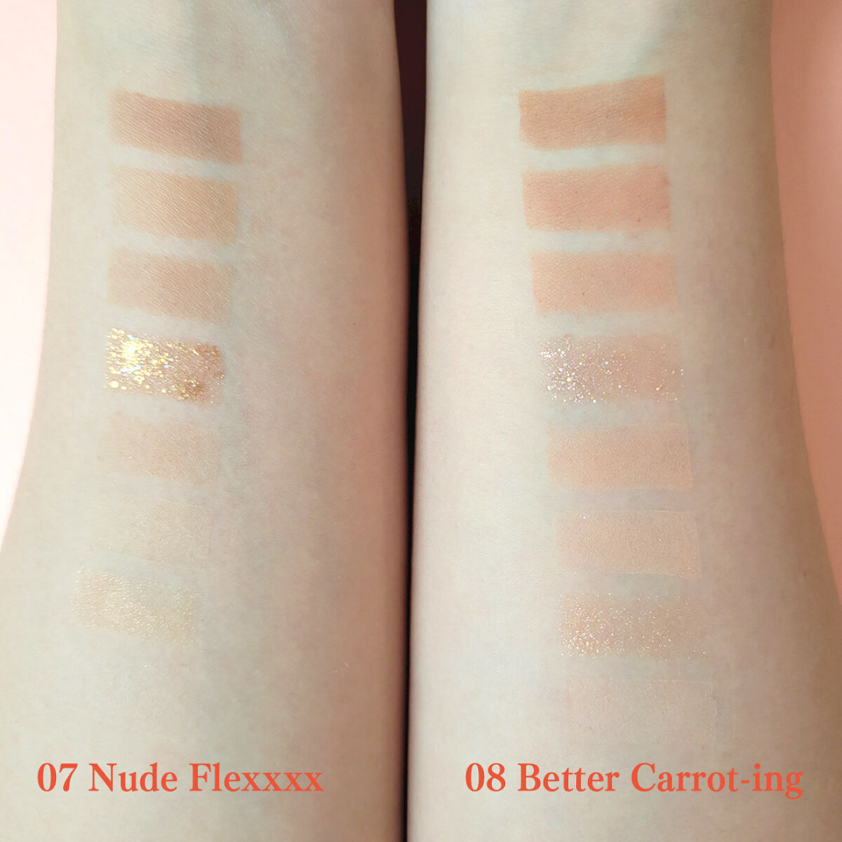 104 #桜色のひと時はグリーンラメが入っているまろやかピンクです。明るすぎず暗すぎず #ナチュラルメイク にもってこい✨これは大人気間違いなしの番人ウケピンクなのでは? 105 #日没後の情熱は透け感のある鮮やか明るめレッドです。うわーかわいい、めちゃくちゃかわいいです、これ。これからの暑い夏の季節にぴったりなカラー! 106 #夜雲の涙は青ラメ入りの透け感強めパープルピンクです。いやこれどブルベ全員好きなやつ〜!!!!!!カワイイなんか青ラメが雨粒みたいだしパープルが紫陽花みたいだし、いいですねえ。。。