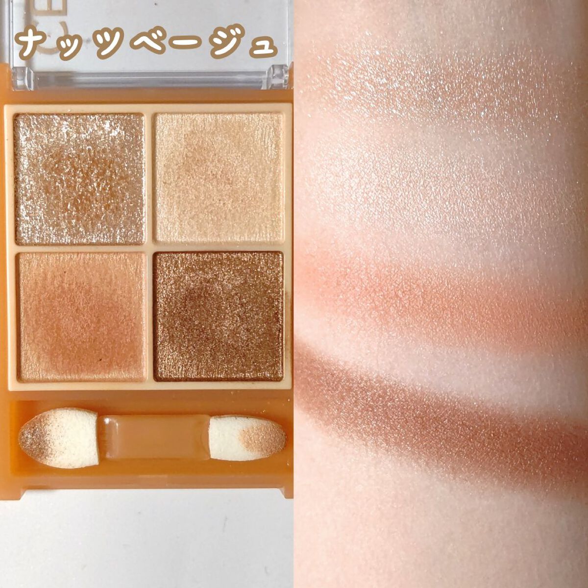 - ラメ・パール・マット3質感の4色アイシャドウ。 肌馴染みの良いベージュを基調としたカラー。ラメ・パール・マットの3質感を重ねて、自然にまぶたを強調し奥行のある大きな目元へ。 しっとり溶け込むような柔らかなパウダーなので、スルスル伸びてまぶたにピタッと密着。保湿成分(スクワラン・ホホバ種子油)配合。