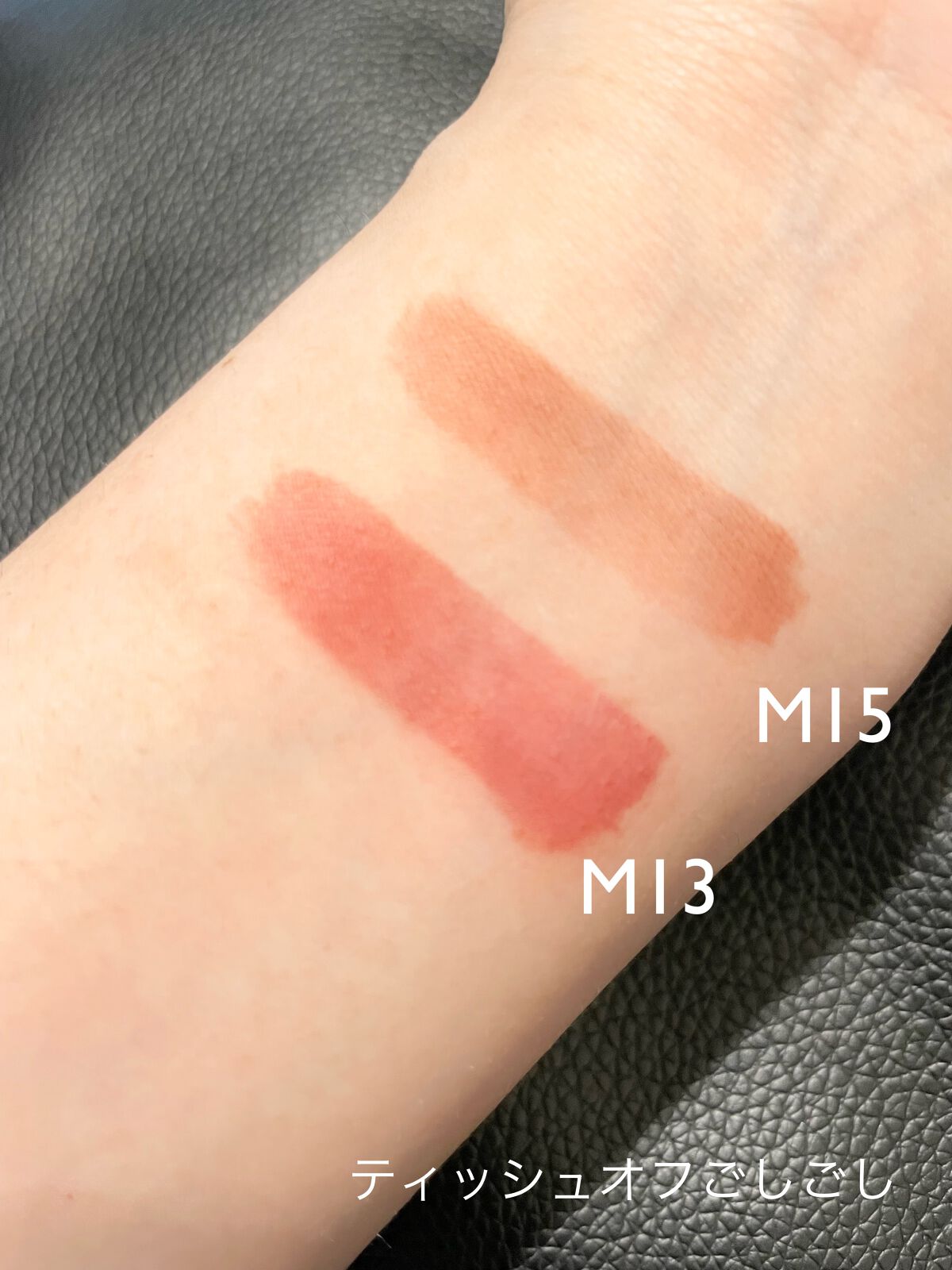 - <M11 ピロウトークブリック> ジメチコン、(ジメチコン/ビニルジメチコン)クロスポリマー、水、グリセリン、セチルPEG/PPG-10/1ジメチコン、トリイソステアリン酸ポリグリセリル-2、ペンチレングリコール、リンゴ酸ジイソステアリル、メチルトリメチコン、マイカ、シリカ、シクロペンタシロキサン、(アクリル酸ブチル/アクリル酸ヒドロキシプロピルジメチコン)コポリマー、イソドデカン、フェノキシエタノール、トリメチルシロキシケイ酸、(アクリル酸グリセリル/アクリル酸)コポリマー、ポリプロピルシルセスキオキサン、カプリリルグリコール、1,2-ヘキサンジオール、プロパンジオール、香料、エチルヘキシルグリセリン、ジメチルシリル化シリカ、水酸化Al、ダイウイキョウ果実エキス、メチコン、ワサビノキ種子油、アルガニアスピノサ核油、ヤシ油、シア脂、ハチミツエキス、BG、酸化チタン、酸化鉄、赤202、赤227、黄5、青1 <M12 ローファイインディゴ> ジメチコン、(ジメチコン/ビニルジメチコン)クロスポリマー、水、グリセリン、トリイソステアリン酸ポリグリセリル-2、セチルPEG/PPG-10/1ジメチコン、ペンチレングリコール、シクロペンタシロキサン、メチルトリメチコン、(アクリル酸ブチル/アクリル酸ヒドロキシプロピルジメチコン)コポリマー、イソドデカン、リンゴ酸ジイソステアリル、フェノキシエタノール、トリメチルシロキシケイ酸、(アクリル酸グリセリル/アクリル酸)コポリマー、マイカ、シリカ、ポリプロピルシルセスキオキサン、カプリリルグリコール、1,2-ヘキサンジオール、水酸化Al、プロパンジオール、香料、エチルヘキシルグリセリン、ジメチルシリル化シリカ、ダイウイキョウ果実エキス、メチコン、ワサビノキ種子油、アルガニアスピノサ核油、ヤシ油、シア脂、ハチミツエキス、BG、酸化チタン、酸化鉄、赤202、赤227、黄5、青1 <M13 ベイパーレッド> ジメチコン、(ジメチコン/ビニルジメチコン)クロスポリマー、水、グリセリン、トリイソステアリン酸ポリグリセリル-2、セチルPEG/PPG-10/1ジメチコン、ペンチレングリコール、メチルトリメチコン、リンゴ酸ジイソステアリル、(アクリル酸ブチル/アクリル酸ヒドロキシプロピルジメチコン)コポリマー、イソドデカン、フェノキシエタノール、トリメチルシロキシケイ酸、(アクリル酸グリセリル/アクリル酸)コポリマー、マイカ、シリカ、ポリプロピルシルセスキオキサン、カプリリルグリコール、シクロペンタシロキサン、1,2-ヘキサンジオール、プロパンジオール、香料、エチルヘキシルグリセリン、ジメチルシリル化シリカ、ダイウイキョウ果実エキス、メチコン、アルガニアスピノサ核油、ヤシ油、シア脂、ワサビノキ種子油、ハチミツエキス、BG、酸化鉄、赤104(1)、赤202、赤227、黄4、黄5、青1 <M14 ランバーマルーン> ジメチコン、(ジメチコン/ビニルジメチコン)クロスポリマー、水、トリイソステアリン酸ポリグリセリル-2、グリセリン、セチルPEG/PPG-10/1ジメチコン、リンゴ酸ジイソステアリル、ペンチレングリコール、シクロペンタシロキサン、メチルトリメチコン、(アクリル酸ブチル/アクリル酸ヒドロキシプロピルジメチコン)コポリマー、イソドデカン、フェノキシエタノール、トリメチルシロキシケイ酸、(アクリル酸グリセリル/アクリル酸)コポリマー、マイカ、シリカ、ポリプロピルシルセスキオキサン、カプリリルグリコール、1,2-ヘキサンジオール、プロパンジオール、香料、エチルヘキシルグリセリン、ジメチルシリル化シリカ、ダイウイキョウ果実エキス、メチコン、アルガニアスピノサ核油、ヤシ油、シア脂、ワサビノキ種子油、ハチミツエキス、BG、酸化鉄、赤202、赤227、黄5、青1 <M15 ウェアリーシロップ> ジメチコン、(ジメチコン/ビニルジメチコン)クロスポリマー、水、グリセリン、セチルPEG/PPG-10/1ジメチコン、シクロペンタシロキサン、トリイソステアリン酸ポリグリセリル-2、ペンチレングリコール、メチルトリメチコン、リンゴ酸ジイソステアリル、(アクリル酸ブチル/アクリル酸ヒドロキシプロピルジメチコン)コポリマー、イソドデカン、フェノキシエタノール、トリメチルシロキシケイ酸、(アクリル酸グリセリル/アクリル酸)コポリマー、マイカ、シリカ、ポリプロピルシルセスキオキサン、カプリリルグリコール、1,2-ヘキサンジオール、プロパンジオール、香料、エチルヘキシルグリセリン、水酸化Al、ジメチルシリル化シリカ、ダイウイキョウ果実エキスメチコン、ヤシ油、シア脂、ワサビノキ種子油、アルガニアスピノサ核油、ハチミツエキス、BG、酸化チタン、酸化鉄、赤202、赤227、黄5、青1 <M16 デイズシナモン> ジメチコン、(ジメチコン/ビニルジメチコン)クロスポリマー、水、グリセリン、セチルPEG/PPG-10/1ジメチコン、トリイソステアリン酸ポリグリセリル-2、シクロペンタシロキサン、ペンチレングリコール、メチルトリメチコン、リンゴ酸ジイソステアリル、マイカ、シリカ、(アクリル酸ブ
