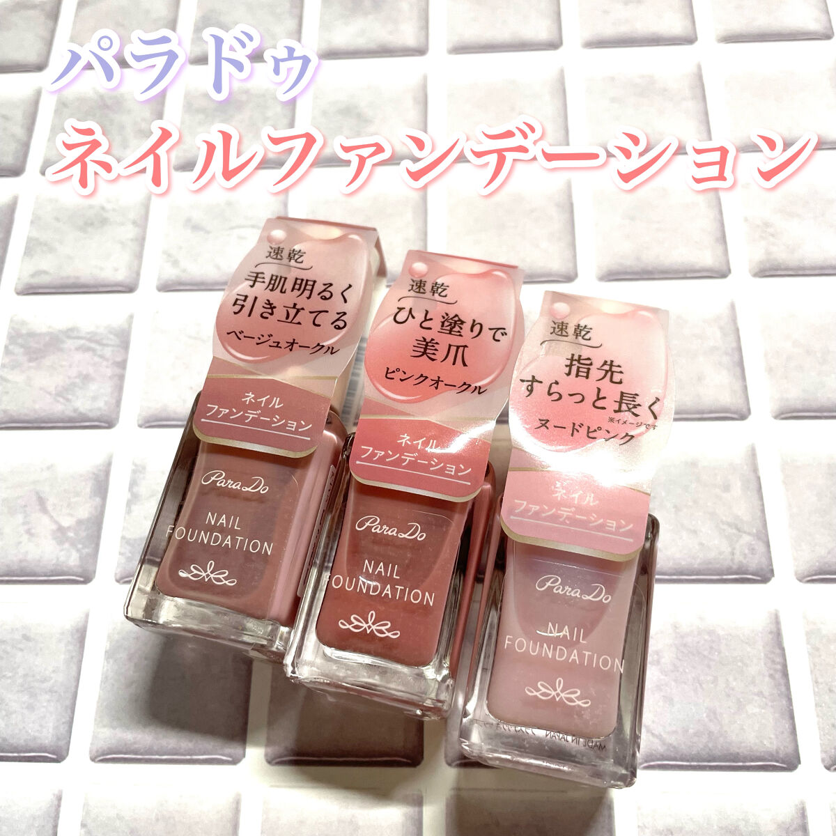 - その色も質感も、全ては手を美しく魅せるために 「パラドゥ ネイルファンデ―ション」は、「色彩のもたらす視覚効果」や「質感」を組み合わせることで、爪はもちろん手全体を美しく魅せるネイルです。 透け感のある発色と上品なツヤ感により、まるで 自分の素爪と手肌の美しさが底上げしたかのような自然な仕上がりに。 「手肌が明るく見えるベージュオークル」 「指先がすらっと長く見えるヌードピンク」 「ひと塗りで素爪が美しく見えるピンクオークル」 なりたい手肌の印象に合わせて選べる全3色をラインアップしています。 速乾処方採用。