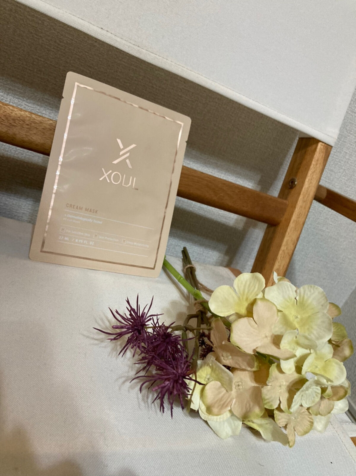XOUL(ソウル)/クリームマスク4,021円(税込み)(BOXプラン購入時)XOUL独自の“クリーム状美容液”がたっぷり入ったシートマスク。ヒト幹細胞培養液を業界トップクラスの10,000ppm配合、となんか凄そうです。袋を開けて手に取ると...