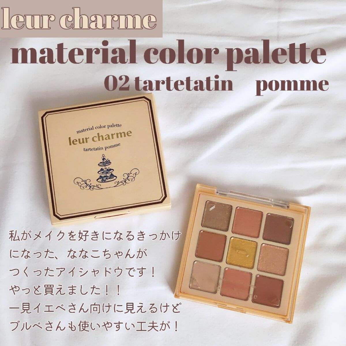 発色と質感にこだわった日本製9色アイシャドウパレット「leur charme material color palette(ルルシャルム マテリアルカラーパレット)」 煮詰めた果実の奥深さとみずみずしい輝きがとけこむ、奇跡のぜいたくパレット しっとりした粉質で高密着!ラメの輝きがえぐいほど綺麗✨ 温かみのあるイエベカラー!