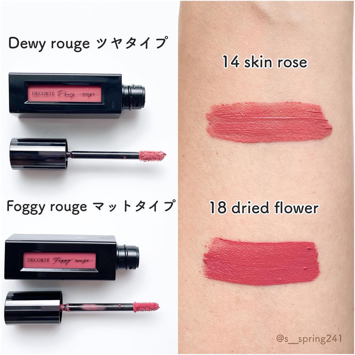 - 無意識に、美しさつづく。 軽やかで心地いい、 艶とマットのスキンケアルージュ。 独自のテクノロジーで“肌を美しく魅せる”ことにこだわり、 自らをエンパワーするような豊富なカラー展開の 「ルージュ デコルテ」から、 唇に纏うあいだ、ずっと軽やかなうるおいに満たされ続けるような心地よさの 「ルージュ デコルテ リキッド」が誕生します。 コスメデコルテならではの、 うるおいと彩りを長時間持続させる 「ハイパフォーマンスカプセル処方」を採用し、 高いラスティング効果を実現。 唇への心地よさと塗りやすさにこだわった平型形状のチップで、 ひと塗りで美しく均一な塗布膜を叶えます。 Dewy rouge (デューイ ルージュ ) 素の唇と一体化するような、生きた艶。 みずみずしく軽やかなタッチで濃密な発色を叶え、 美しい仕上がりと心地よさが続くリキッドルージュ。 01 signature red / 06 urban wear / 07 warm maple / 08 bitter lips / 09 for luck / 10 vivid memory / 11 departure time / 12 star spice /13 spring coral /14 skin rose Foggy rouge(フォギー ルージュ) 50秒で、二次付着レス。 加湿されているような心地よさで唇を彩り、 つけたてのマットな高発色が持続する、 トランスファープルーフのリキッドルージュ。 05 signature red / 15 be stylish / 16 cassis dolce /17 mannish lady / 18 dried flower