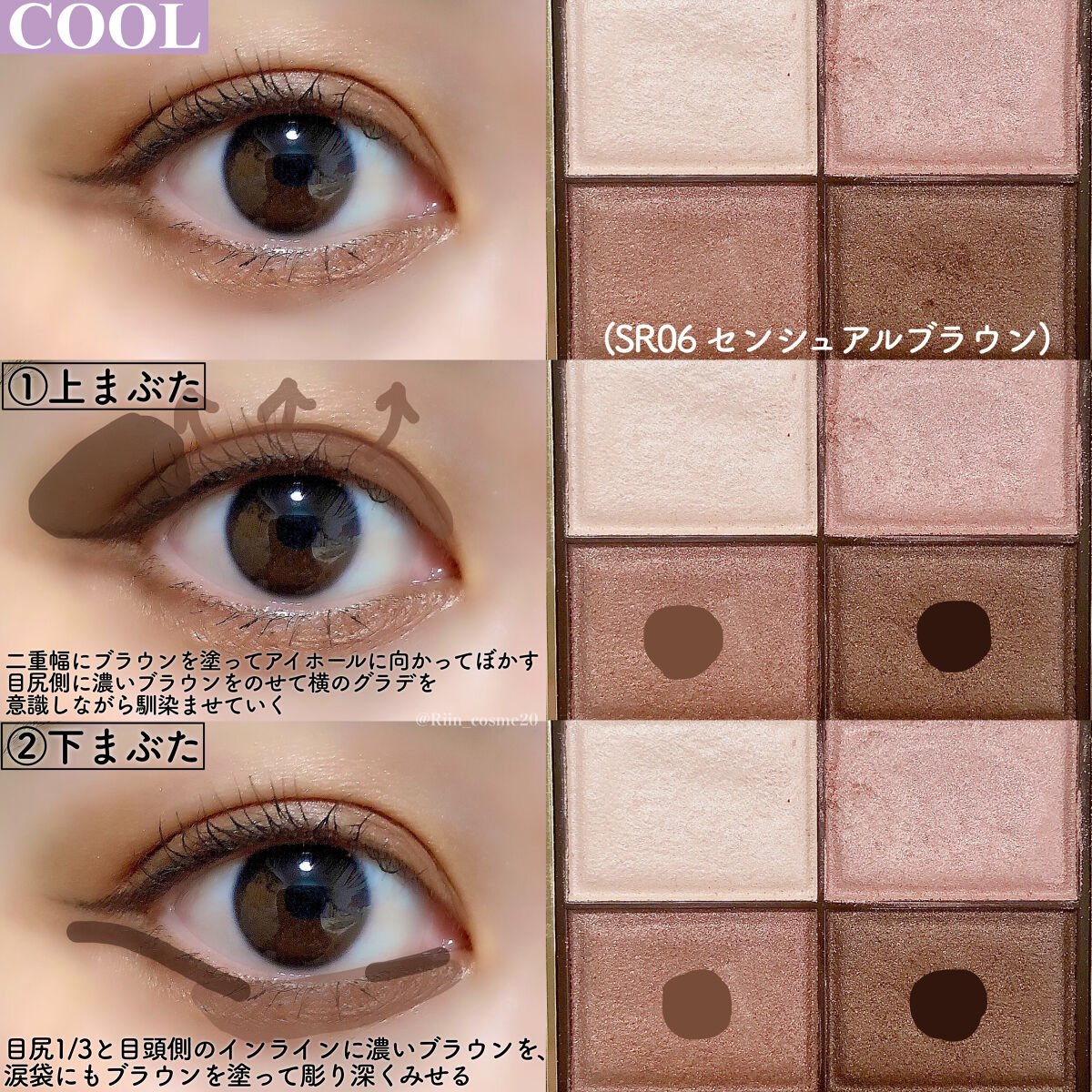 - 【ポイント】 1.失敗しらずのブラウンベースの4色パレット!簡単にグラデーションを実現。 2.しっとりリッチな質感!するする伸びて粉飛びもなく目元の乾燥も防ぎます。 3.上品な輝きの繊維パール+金パールを贅沢に配合。ギラつかない大人のツヤを演出。 <SR01'23・SR03'23・SR06'23・SR11'23(限定デザイン)> 実力派グラデアイシャドウからデジタルアートをあしらった限定デザイン登場。 しっとりリッチな密着感。肌のなじみの良い実力派グラデアイシャドウ。