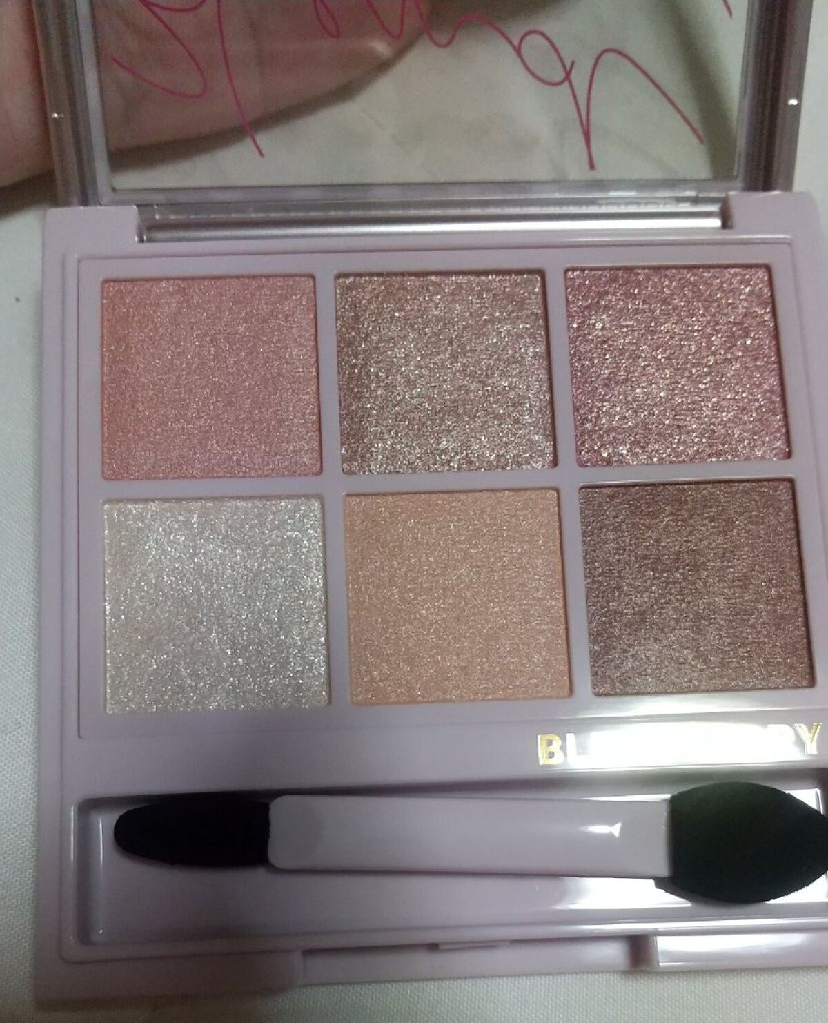 コンパクトの柄も可愛くて買ってよかったです。一つ一つの柄も花びら柄で、マット、パールの入ったチークとハイライトも入った5色。 1色1色が可愛くて、買ってよかった。テンションあがるし、嬉しいです✨ コンパクト自体も薄ピンクの限定パレット! 可愛いしか例えることできないです(๑♡∀♡๑) 中のチャームもしずく型?でキラキラしてて、大人可愛くも使えるお品だと思います!