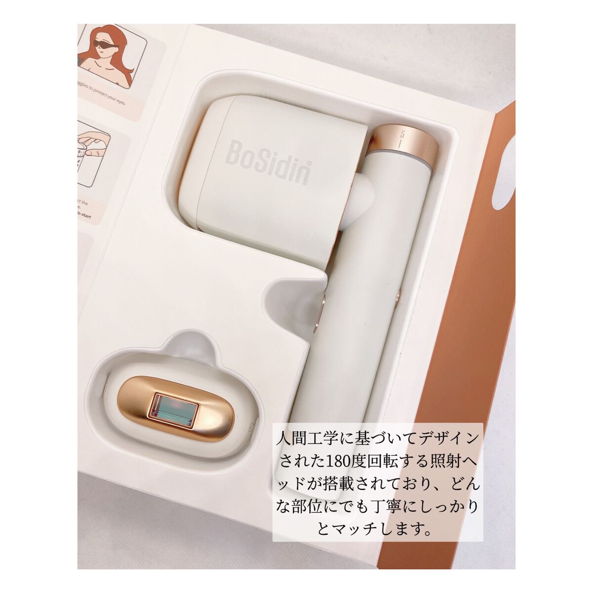 初めてのBoSidinを使ってみました。最初は国内メーカー、有名なレーザー脱毛器を検討していましたが、こちらの商品の国内レビュー、海外のレビューを見て、アメリカFDA安全保証があることからBoSidinを選択しました。脱毛サロンに通っていたの...