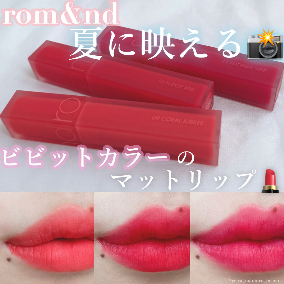 ロムアンドの人気アイテムがブラックとホワイトのおしゃれパケで発売されています✨ 可愛い!!! 17 PEACH DOWN ピーチダウン:ふんわりピーチカラー 18 BAD BERRY バッドベリー:ほんのりくすみのある落ち着いたベリー