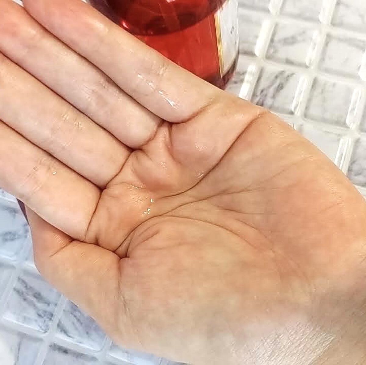 液体はあまりとろみを感じないサラッとしたテクスチャ。 伸ばしやすくて、スーッと馴染みますが、そのあとはペタペタせず不思議とサラサラに✨ ほんのりラメが入っててツヤ肌にもなる! トーンアップ血色アップを叶えてくれてこんなに良かったっけ? ボトルも相変わらずかわいいしテンションを上げてくれるのもいいな💗