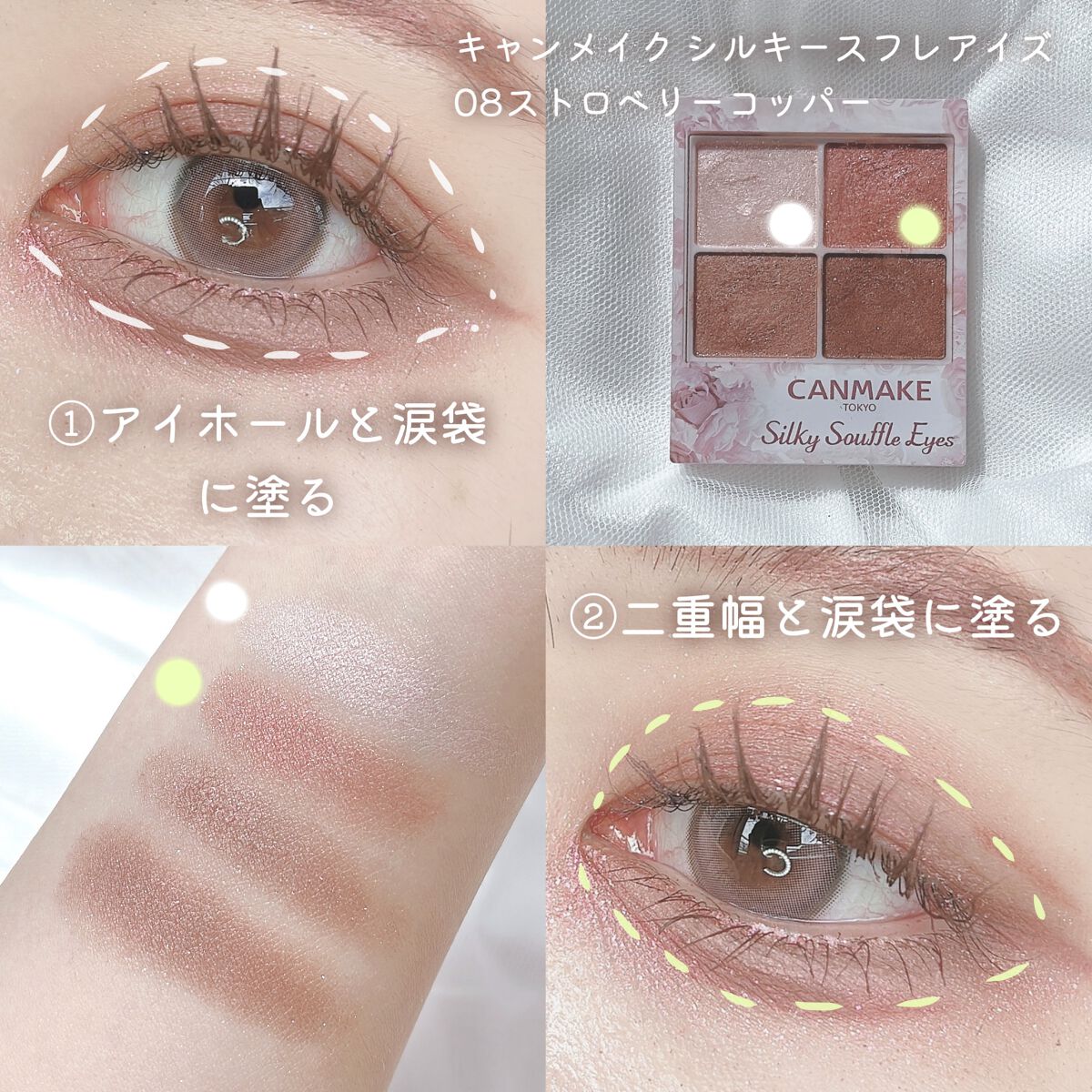 やり方は画像を見てみてください! よりぷっくりさせたい方は、最後にコンシーラーの1番左のカラーを涙袋に塗ると◎ 黄味がかったアイシャドウが似合わない方は01番の方がいいかもしれないです。 ラメを使わない完全マットなので、ナチュラルメイクやスクールメイクにもおすすめ✨