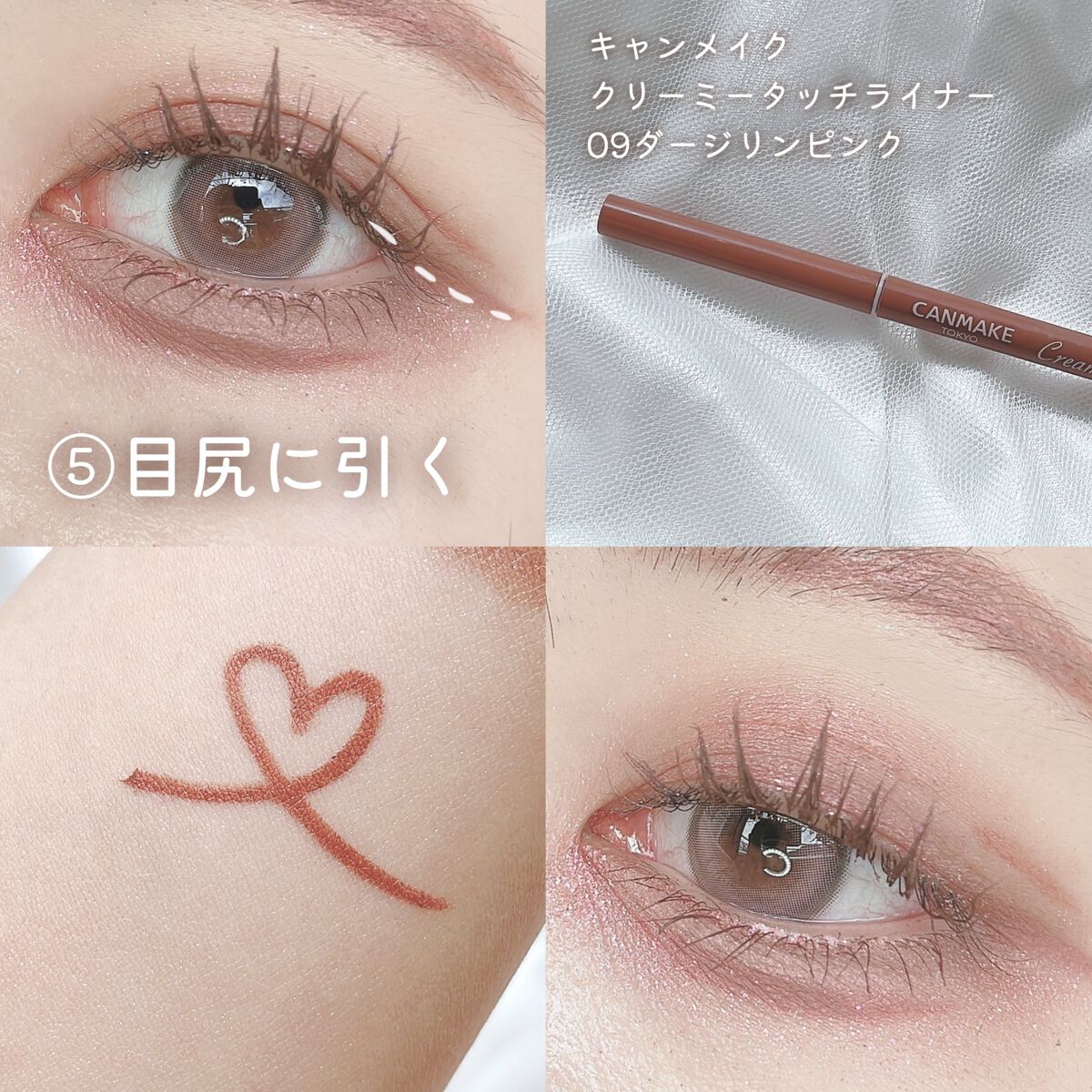 目が1.5倍に見えるアイメイク方法👀 完全自己流なので、参考程度に見てくださると嬉しいです♡ キャンメイククリーミータッチライナー 02 ミディアムブラウンを目尻にひく