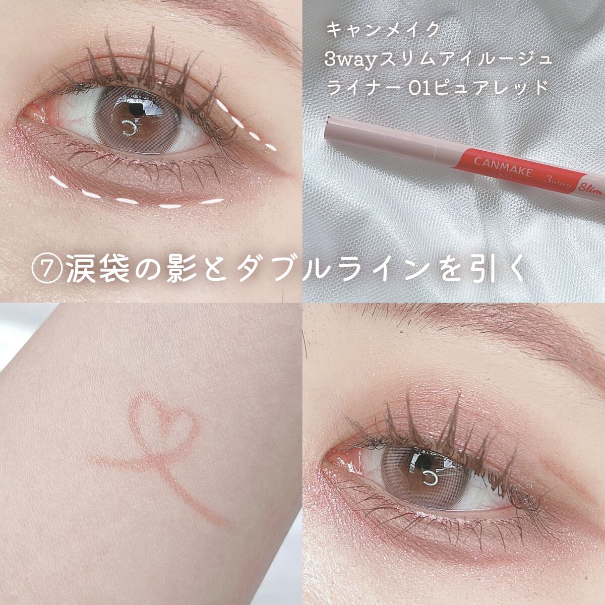 rom&nd ベターザンパレット 01PAMPAS GARDEN キャンメイク アイバッグコンシーラー 02ピンクベージュ CEZANNE ストレッチコンシーラー 30オレンジ系 これどんなに濃いクマも消える◎ やり方は画像を見てください🫶🏻 ラメを使わずに盛りたい時や、あざとく盛りたい時におすすめ!