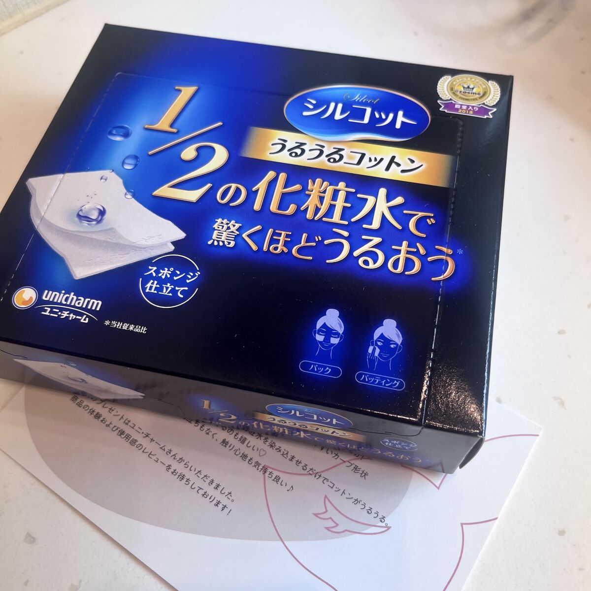 1/2の化粧水で潤うというのに惹かれて購入してみました!! スポンジ素材だから、毛羽立たないで使いやすかったです💕 このコットンは200円台で買えるからコスパも◎ 40シート入だけど1つが2枚に切り取れるから、私は1枚ずつ切り取って使用してます!!
