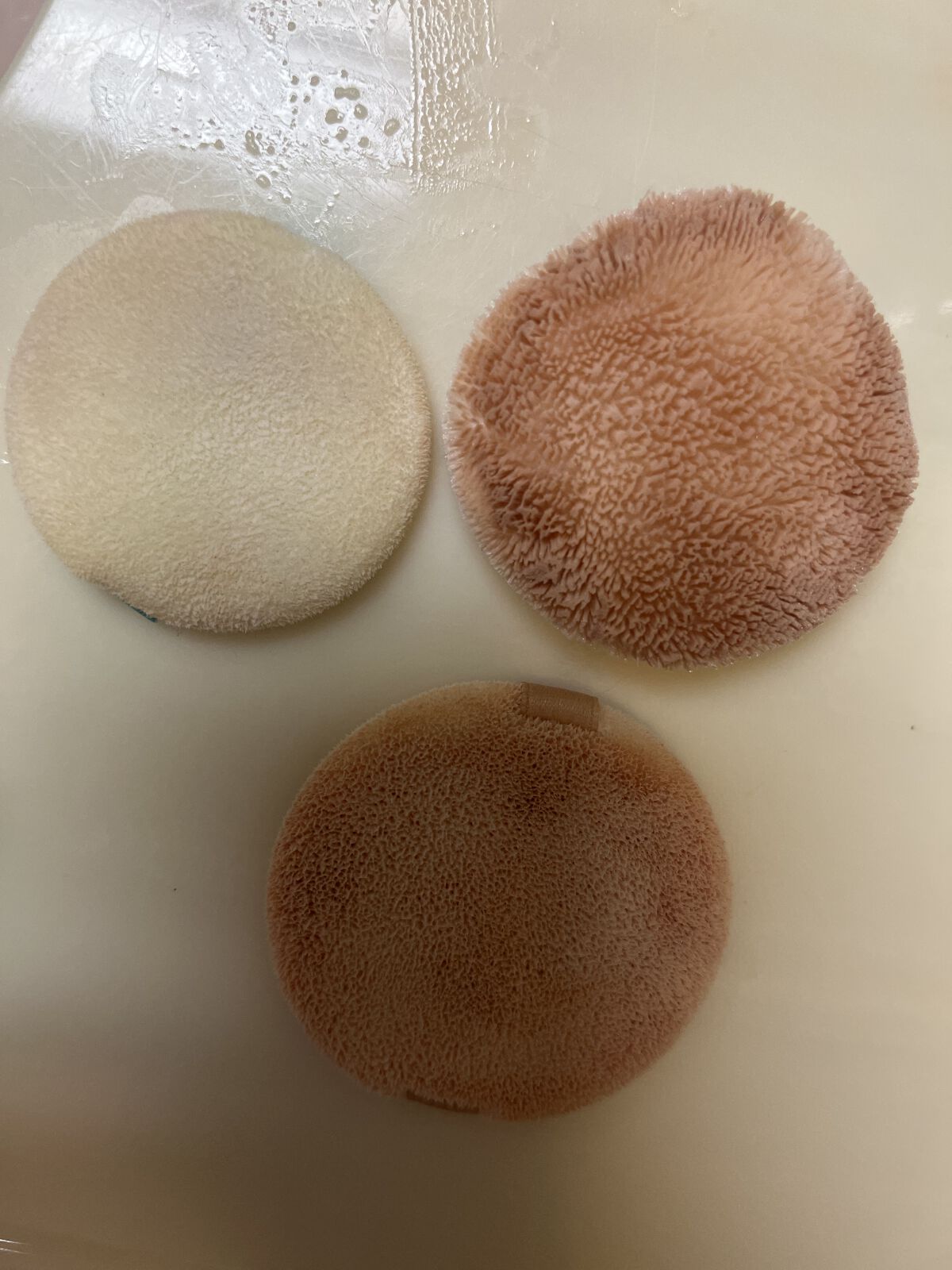 いつも中性洗剤で洗っていましたが、DAISOパフ・スポンジ専用洗剤¥110気になってはいましたが中性洗剤でも不便なかったので買わずにきていたのですが母親がかったら中性洗剤では落ちなくてもこれならすごい綺麗になる!と言われへぇーと思い購入🤣透明...