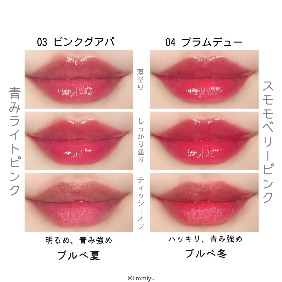 ▼ロムアンドティント素早く見る!細かくパーソナルカラータイプ分け📒【𝙏𝙬𝙞𝙩𝙩𝙚𝙧・𝙄𝙣𝙨𝙩𝙖𝙜𝙧𝙖𝙢→@ilmmiyu】※カラータイプ分けはラピスの16タイプカラーメソッド®︎に基づくアナリスト個人の見解です。rom&ndロムアンドジュー...