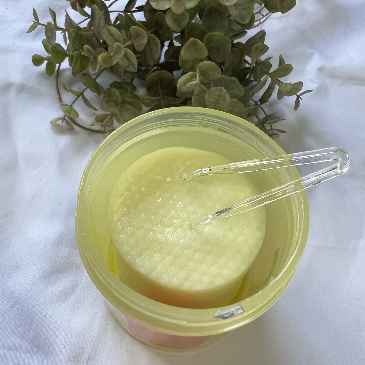 - 角質をケアし生き生きとした印象の肌に導くトナー代わりのイエローパッド。 青みかんエキス*1配合+自然由来の果実酸*2。 *1タンジェリンエキス: 整肌成分 *2整肌成分