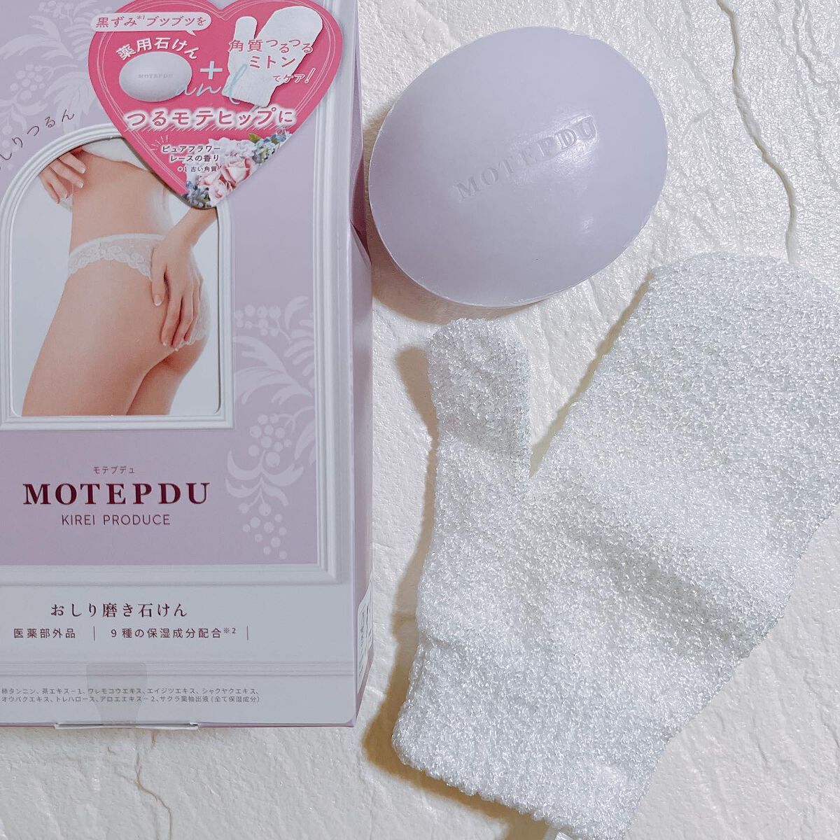 モテプデュおしり石けんピュアフラワーレースの香り990円(税込)【商品紹介】わたしのお尻にはぶつぶつニキビや黒ずみ角質(※1古い角質※2にきびを防ぐこと)があります🤫お家でこっそりおしりの悩みを洗ってケアする石鹸『モテプデュおしり磨き石けん』...