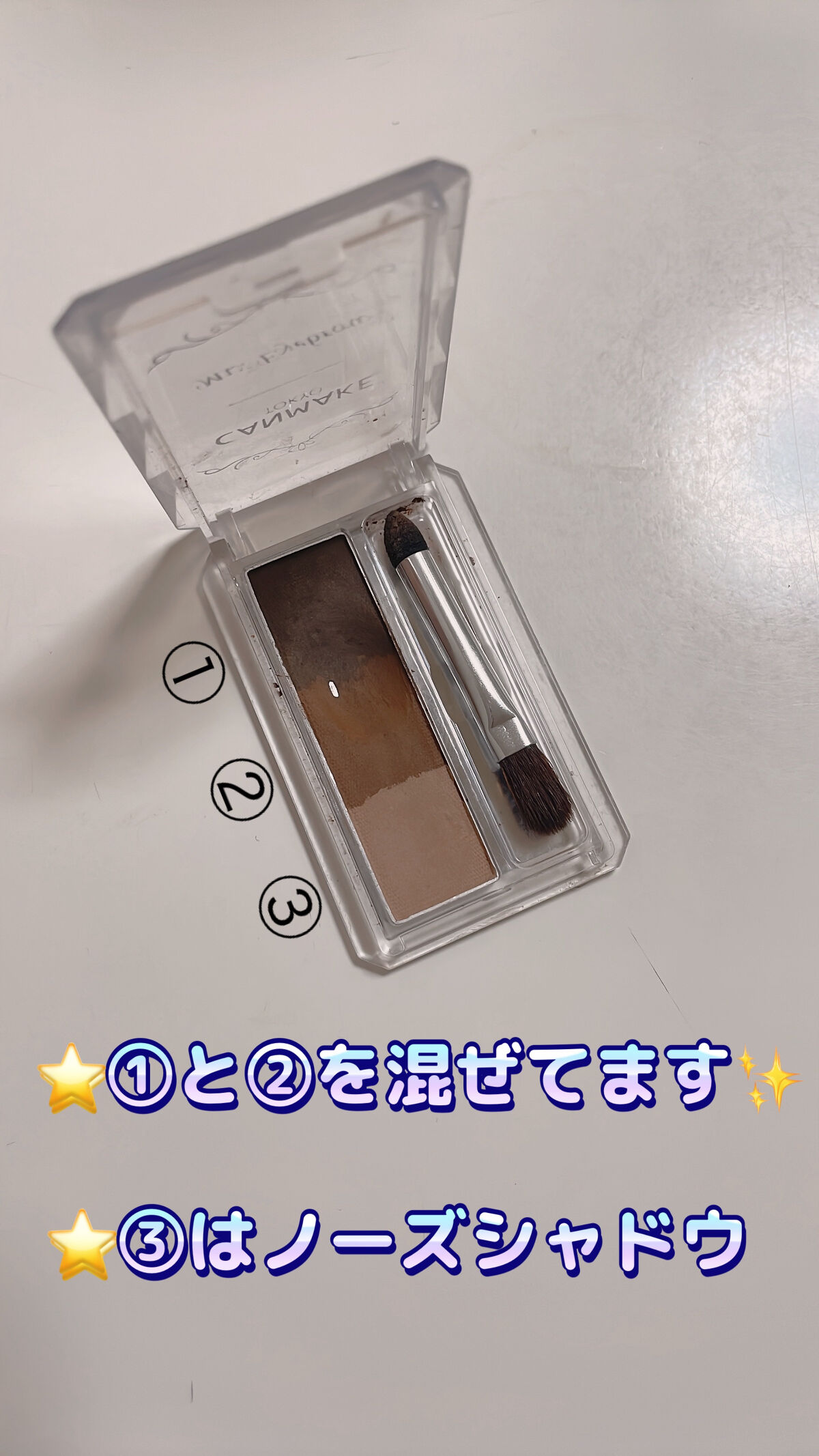 眉も鼻も涙袋の影も行ける万能な粉👶🏻🫧 濃い色で眉尻を描いて真ん中と薄い色を混ぜて眉頭を描いてます 粉質もよく色持ちがよくコスパが抜群です🫧 毎日使っても全然減らないところが良い✨ この色だと髪色関係なく使えそうと思います໒꒱·゚