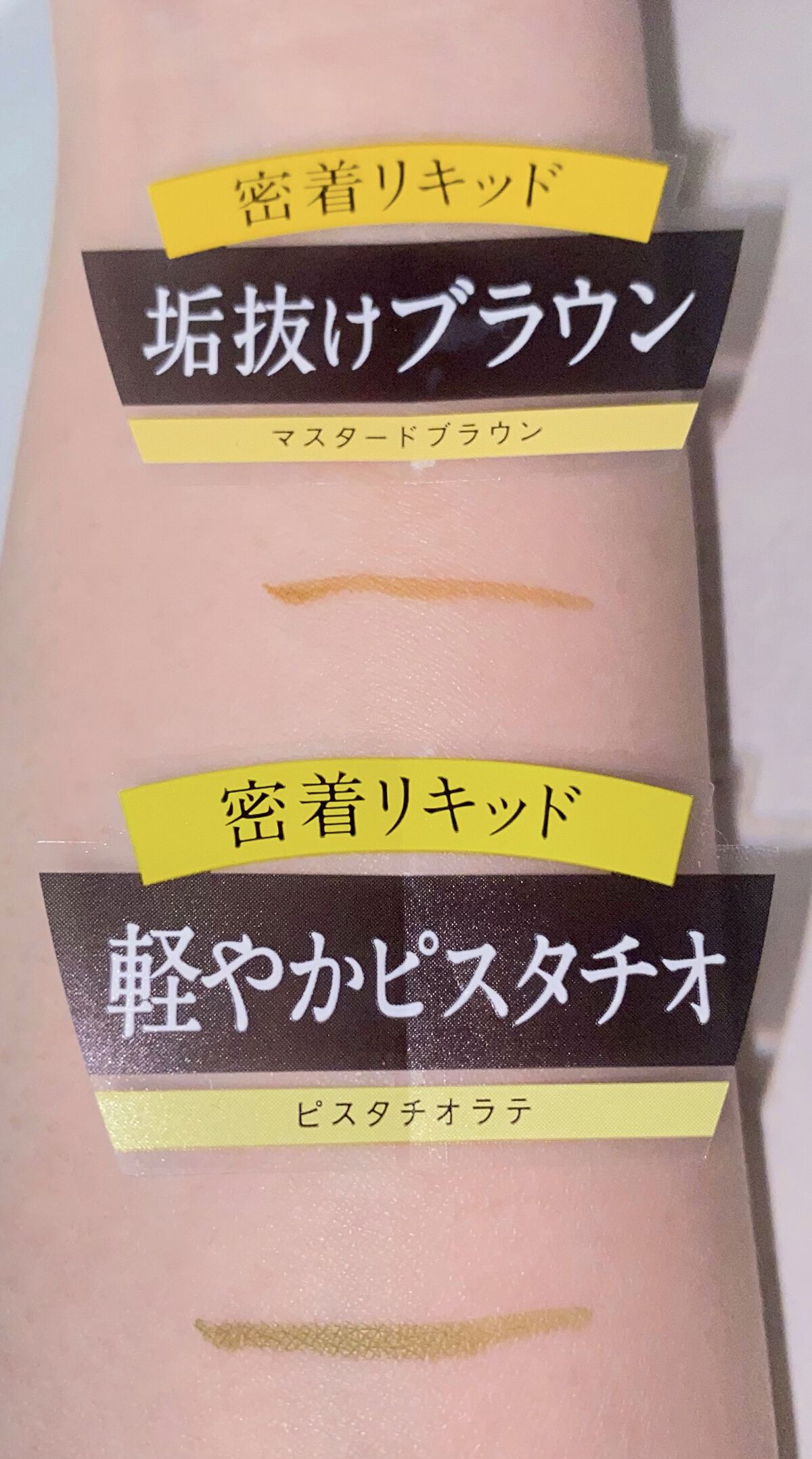 - 筆先までずっとなめらか、目尻で感動するリキッドアイライナー。 必要な量が肌にのる新設計で、まぶたの上をすべるような、滑らかな描き心地。しなやかでコシのある筆が、筆圧のコントロールを容易にし、太いラインも細いラインも思い通りに仕上げます。水、汗、涙に強いウォータープルーフタイプなのに、通常洗顔で簡単オフ。肌に色素が残らない顔料を使用。5種類の美容液成分を従来品の200%配合し、メイクしながら目元ケアまで。 ●ブラウンブラック ※2020年9月12日 バラエティショップ先行発売 ●漆黒ブラック ※2020年12月頃発売予定 ●ナチュラルブラウン ※2020年12月頃発売予定 ●シフォンブラウン 「毎日メイクに透明感と抜け感」 ブラウンでも、グレーでも、ベージュでもないニュアンスカラー。 自然な印影で素の目元を際立て、頑張りすぎない、ふんわりとした目元に。 ●アプリコットブラウン 「じゅわっと血色感。 肌に馴染むおしゃれカラー」 温かみのあるアプリコットがじゅわっと滲む血色感を目元に演出。 肌馴染みが良いので、カラーライナーに抵抗がある方もブラウンの延長線上で楽しめる、使いやすい色味です。 ”ちょっとオシャレ”な空気感を演出するカラー。 ●ピンクショコラ アイライナー 「ピンクが溶け込む濃厚ブラウン」 肌馴染みが良く、目元にじんわり血色感をプラス。 さりげなく女性らしさが加速するようなカラー。 ●ピスタチオラテ (2022年7月29日(金)発売) 「“目尻”に抜け感アクセント」 肌に馴染むのに映える絶妙なグリーン。 トレンドカラーに“くすみ”と“抜け感”をプラスしたまろやかな発色。 ●マスタードブラウン 「“イエロー”が揺れる、大人の洒落色」 (2022年7月29日(金)発売) まるで太陽のような暖かさを感じる新しいブラウン。 ほんのり感じるイエローでメイクが一気に垢抜ける稀有な色。 ●シフォンピンク(2023年2月10日発売) 「ふんわり柔らか"まろみピンク"」 甘くなりすぎない青みニュアンスで目元の透明感UP。 目元を引き締め、ピンクメイクにありがちな腫れぼったさを解消。 ●ミルクカプチーノ(2023年4月21日発売) まろやかな深みの“優しい締め色” どんなメイクにも合わせやすいカラー。 自然な陰影でさりげなく目幅を拡張します。 ●グレーカシミア(2023年10月1日発売) ブラウンがほんのり溶け込んだ、暖色グレー まろやかな発色で、パーソナルカラーを問わず肌に馴染む 目元の陰影になりすまし、抜け感と目力を欲張りに叶える ●ダークフィグ(2024年6月1日発売) するする”なめらか。描きやすいのに、落ちにくい。 クッキリ可愛いほの甘ダークブラウン ●ピーチモカ(2024年8月1日発売) ふわっと自然に盛れる“桃色ブラウン” ほんのり血色感で目元にうるみ感を演出 ●スターダストブラウン(2024年12月11日発売) キラッと繊細に輝く''星屑ブラウン'' 透け感のあるダークブラウンの色味とラメの輝きが、目元に艶のある立体感を演出 ●チャコールモカ(2025年4月10日発売) 目元を締める''深みグレージュ'' 黄みや赤みに偏りすぎない絶妙な色設計で、自然に目元を強調