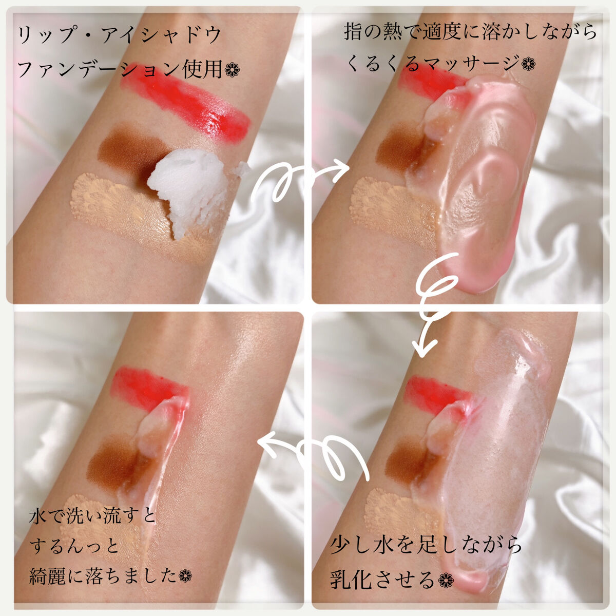 | バームを肌に乗せて撫でるとすぐに オイルみたいにみずみずしく変化✨ | 詳細を見る | ||