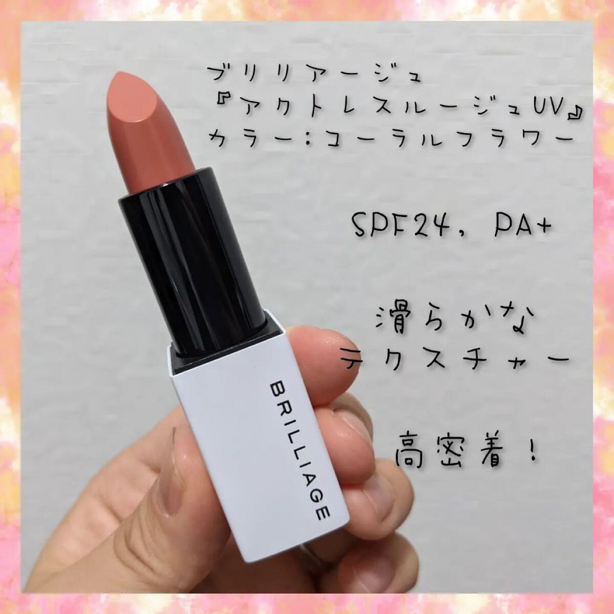 ブリリアージュアクトレスルージュUVコーラルフラワーSPF24PA+3枚目タッチアップ4枚目ティッシュオフ春先から夏にかけて紫外線対策…リップもちゃんとUVしたいなあ色々なUVケアリップはあるけれどこのリップの_人人人人人人人_>カラー< ̄^...