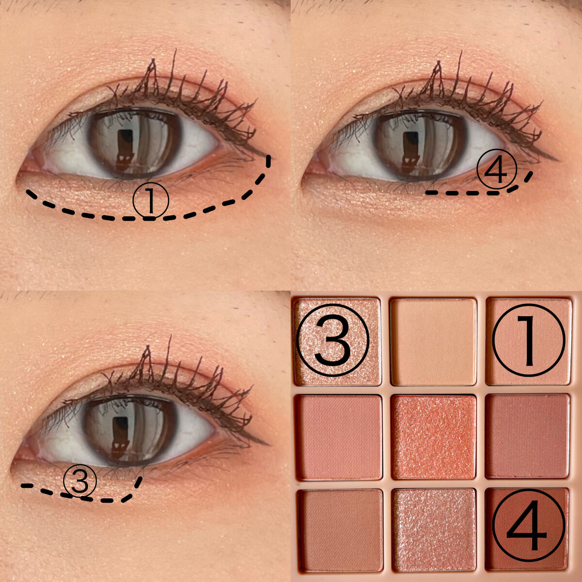 URGLAMBLOOMINGEYECOLORPALETTEを使用してアイメイク✄✄遠心顔っぽく見せたくて、ベースカラーを薄めにして目尻の締め色を濃いめに入れてみました!前は結構決まったパターンのメイクをしてましたが、最近は色々組み合わせや塗る...
