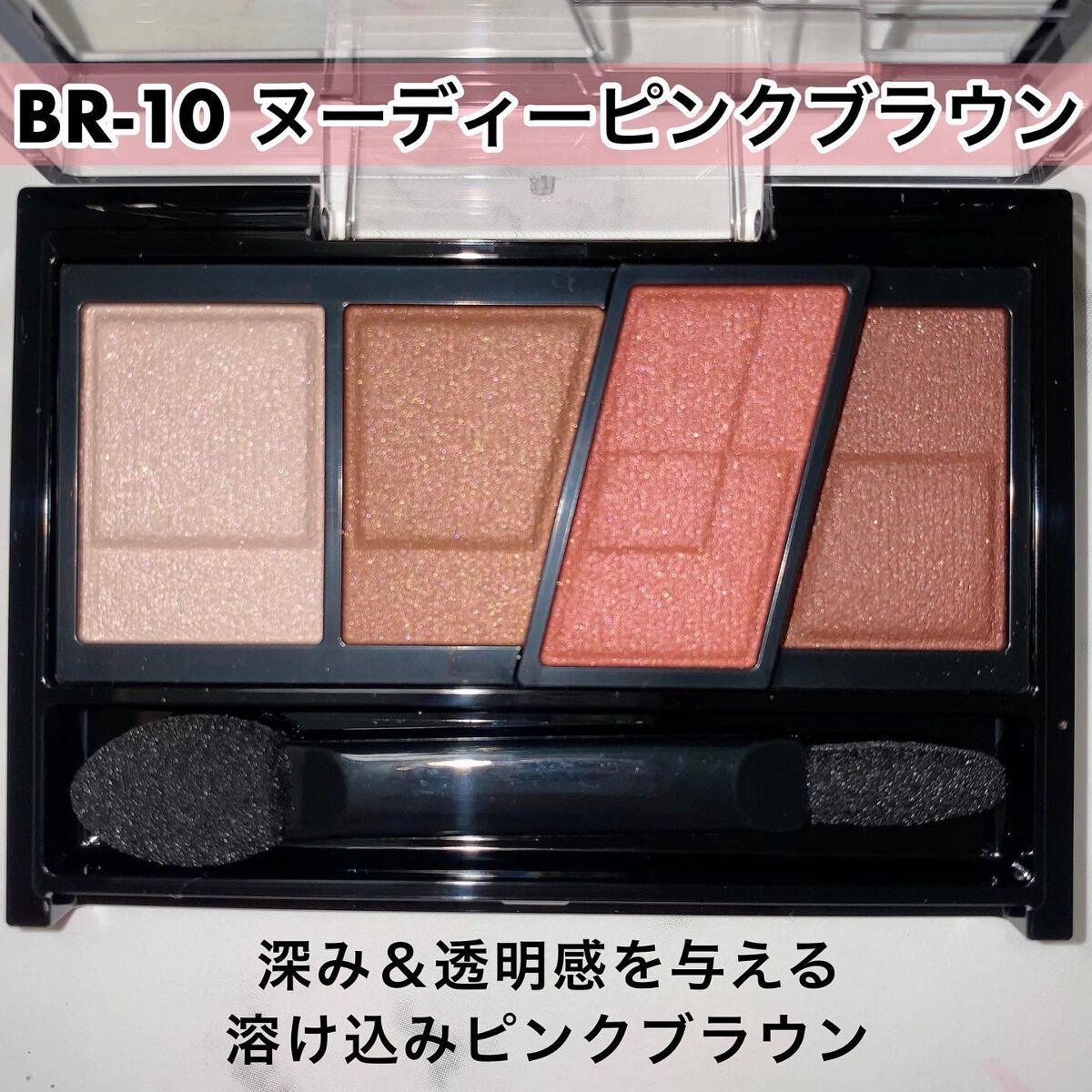 - カラーニュアンスシェードを目尻に入れるだけで目幅を大きく見せ※、抜け感のある明るい大きな目元に仕上るブラウンアイシャドウ。 ブラウン×カラーニュアンスの4色セット。※メイクアップ効果