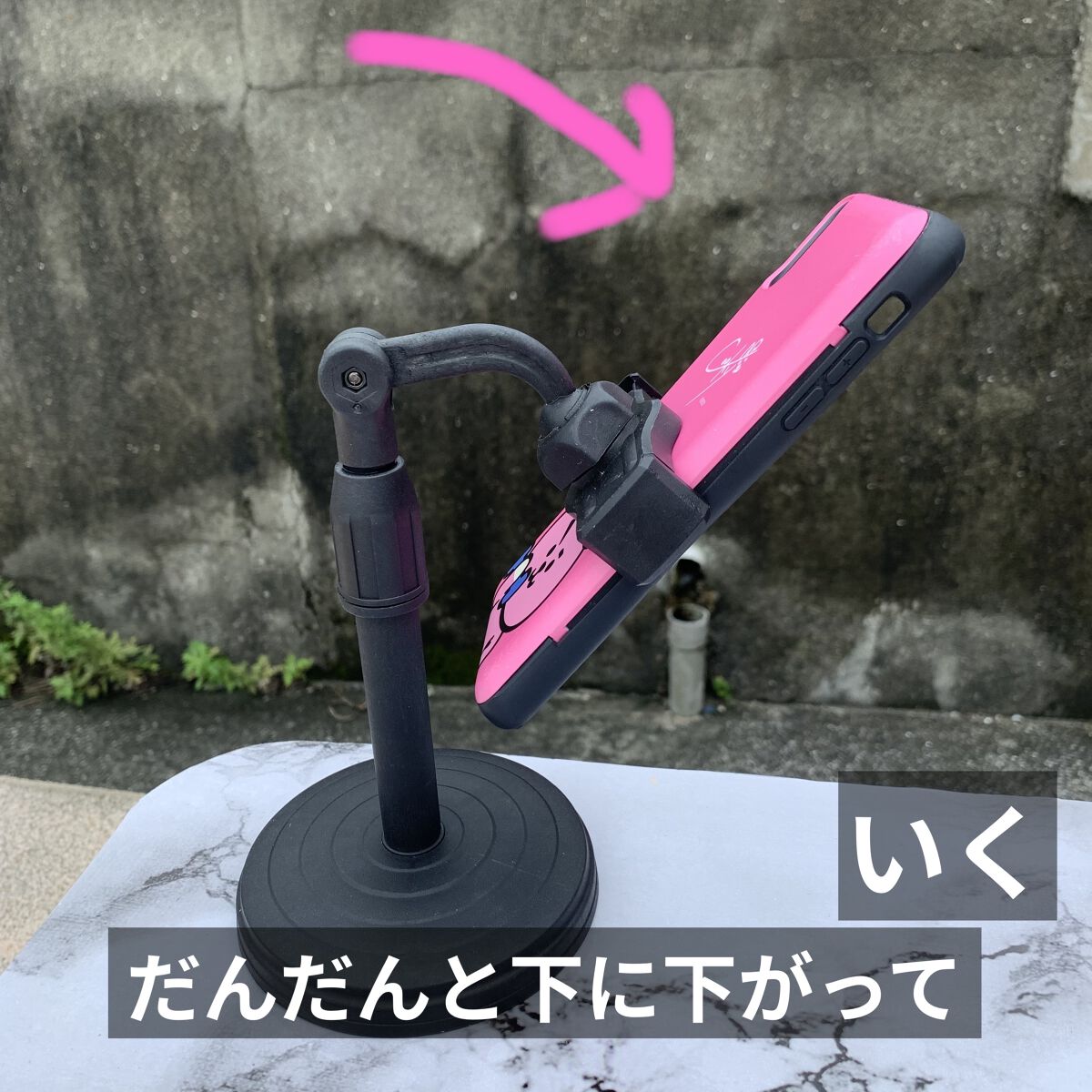 100円だし、角度も何段階か変えられるし、コンパクトにもなるから持ち歩きとか、旅行とかに持っていくにも良いかも👍 スマホケースが厚いと少し縦向きだとずれ落ちちゃうときがあったからそこんところは使いにくいかも。 横向きなら安定する気がする。🥹