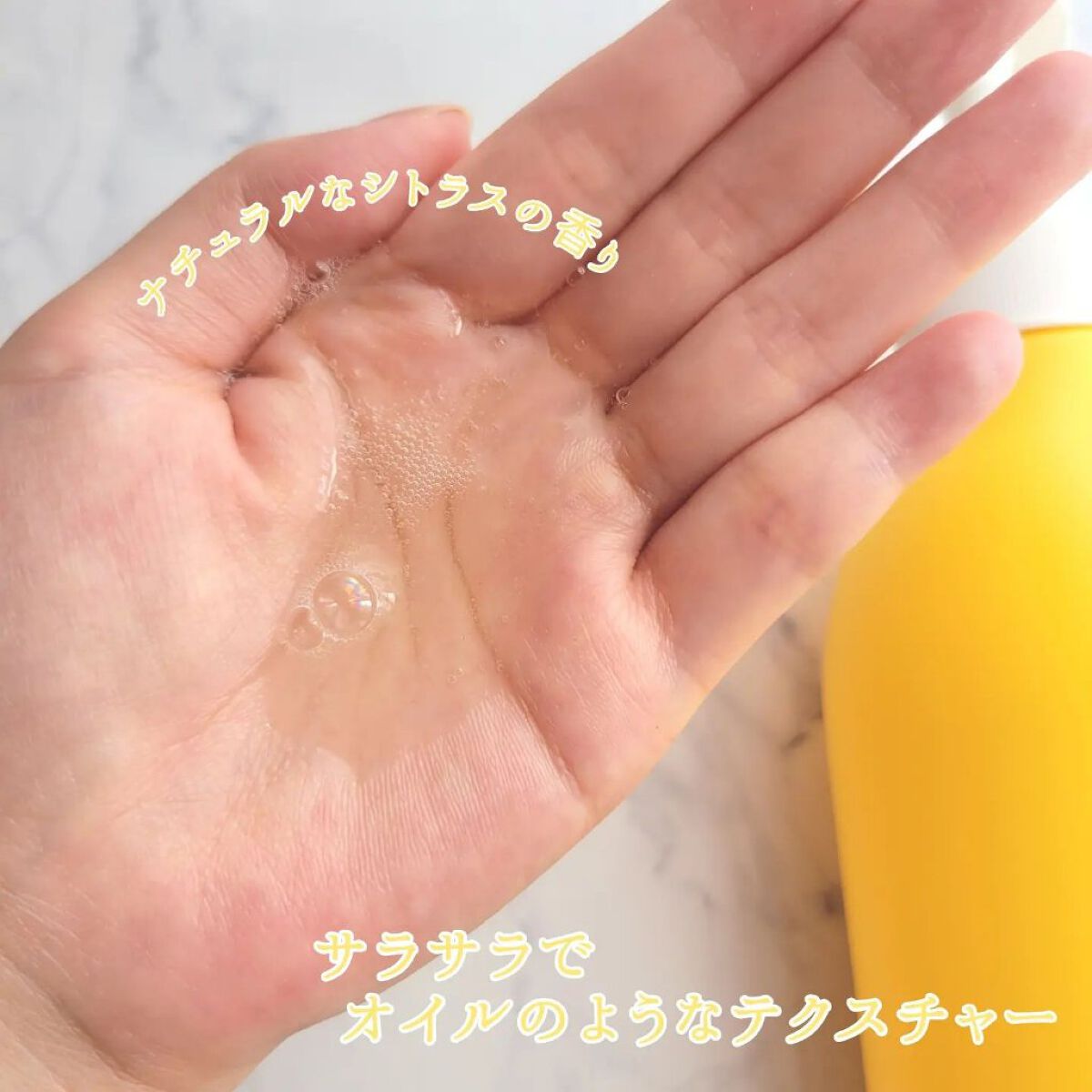 透明なさっぱりとしたテクスチャーは、泡立ちが良く、ふわふわで気持ちいぃ🥰 キメ細かな泡に含まれたサリチル酸が溜まった汚れをオフし、肌のベースを整えてくれます。 ビタミンCたっぷりのカラマンシーを使用♡ 古い角質を落として、ベタつきのないさっぱりとしたお肌へ✨ コンマナインのボディミストと一緒に背中ケアも頑張ってます👍 シトラスの香りがまたスッキリ心地よい〰︎🥺 夏のボディケアにオススメです♡