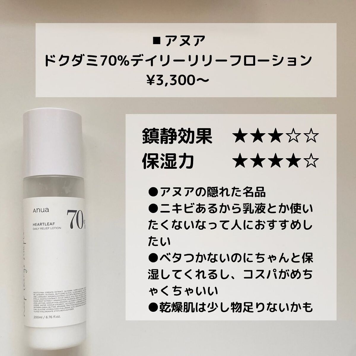 Anua ドクダミ70デイリーリリーフローション | 3,300円 |
