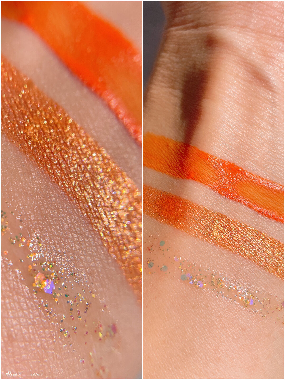 ◎下まぶたポイントのキラキラメイク❤︎WHOMEEのチェリーピンクかテラコッタピンクが欲しかったけど、両方とも売り切れてて、なんならキャロットオレンジしかなくて😢😢とりあえず気にはなっていたので、キャロットオレンジを購入🤘塗ってみたら確かにか...