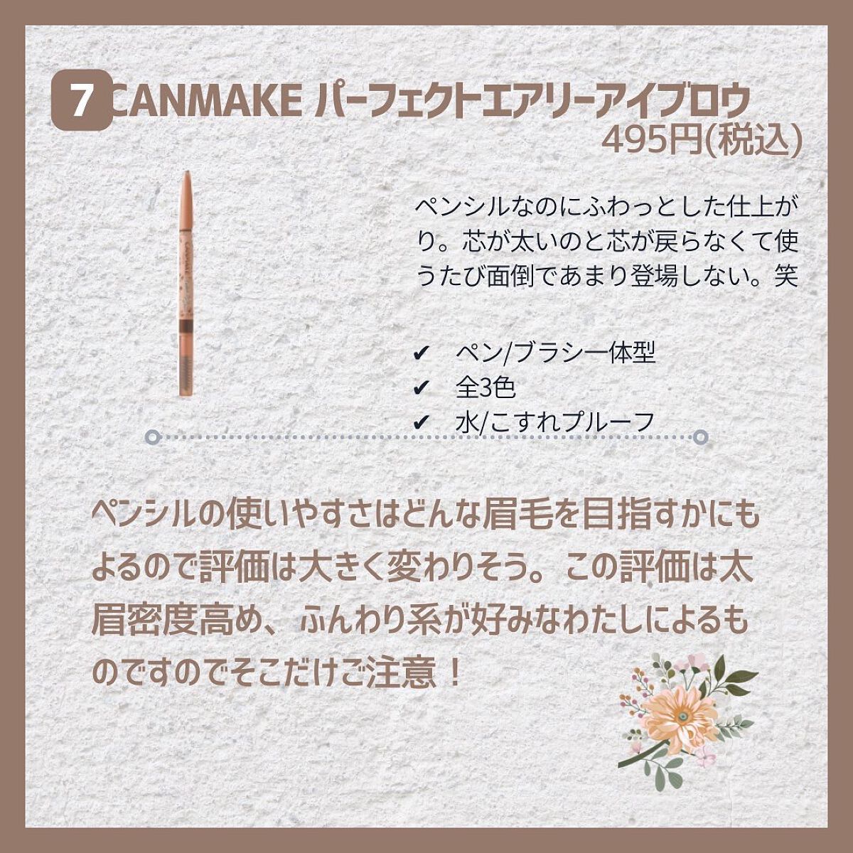 | アイブロウランキング第58位 | 前のものより眉尻がシャープに描けるようになったし、パウダーもボテっとつくことがなくなってめちゃくちゃ使いやすい | 詳細を見る |