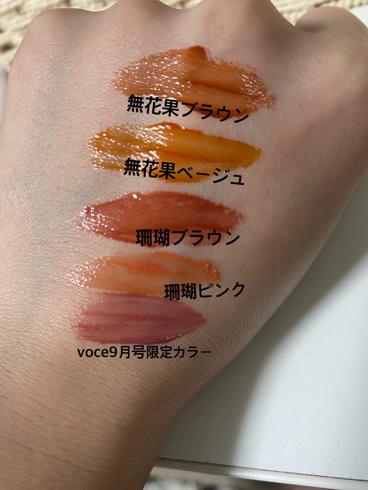 - <01 珊瑚ピンク> ビスジグリセリルポリアシルアジペート-2、水、ジフェニルジメチコン、オクチルドデカノール、リンゴ酸ジイソステアリル、グリセリン、セチルPEG/PPG-10/1ジメチコン、DPG、エチルセルロース、イソステアリン酸ソルビタン、ペンチレングリコール、(アクリル酸ヒドロキシエチル/アクリロイルジメチルタウリンNa)コポリマー、スクワラン、セテス-20、ステアロイルグルタミン酸Na、酸化チタン、ポリソルベート60、カプリル酸グリセリル、香料、黄5、エチルヘキシルグリセリン、黄4、赤227、リモネン、トリ(カプリル酸/カプリン酸)グリセリル、リナロール、ツバキ種子油、チャ葉エキス、青1、BG、ヒマワリエキス、オニユリエキス、乳タンパクエキス、リンゴ果実エキス、バラエキス、フェノキシエタノール <02 珊瑚ローズ> ビスジグリセリルポリアシルアジペート-2、水、ジフェニルジメチコン、オクチルドデカノール、リンゴ酸ジイソステアリル、グリセリン、セチルPEG/PPG-10/1ジメチコン、DPG、エチルセルロース、イソステアリン酸ソルビタン、ペンチレングリコール、(アクリル酸ヒドロキシエチル/アクリロイルジメチルタウリンNa)コポリマー、スクワラン、酸化チタン、セテス-20、ステアロイルグルタミン酸Na、黄5、ポリソルベート60、カプリル酸グリセリル、香料、エチルヘキシルグリセリン、赤227、赤104(1)、黄4、リモネン、青1、トリ(カプリル酸/カプリン酸)グリセリル、リナロール、ツバキ種子油、チャ葉エキス、BG、ヒマワリエキス、オニユリエキス、乳タンパクエキス、バラエキス、リンゴ果実エキス、フェノキシエタノール <03 珊瑚ブラウン> ビスジグリセリルポリアシルアジペート-2、水、ジフェニルジメチコン、オクチルドデカノール、リンゴ酸ジイソステアリル、グリセリン、セチルPEG/PPG-10/1ジメチコン、DPG、エチルセルロース、イソステアリン酸ソルビタン、ペンチレングリコール、(アクリル酸ヒドロキシエチル/アクリロイルジメチルタウリンNa)コポリマー、スクワラン、酸化チタン、セテス-20、ステアロイルグルタミン酸Na、黄5、ポリソルベート60、カプリル酸グリセリル、香料、赤227、エチルヘキシルグリセリン、赤104(1)、黄4、リモネン、青1、トリ(カプリル酸/カプリン酸)グリセリル、リナロール、ツバキ種子油、チャ葉エキス、BG、ヒマワリエキス、オニユリエキス、乳タンパクエキス、バラエキス、リンゴ果実エキス、フェノキシエタノール <04 無花果ベージュ> ビスジグリセリルポリアシルアジペート-2、水、ジフェニルジメチコン、オクチルドデカノール、リンゴ酸ジイソステアリル、グリセリン、セチルPEG/PPG-10/1ジメチコン、DPG、エチルセルロース、イソステアリン酸ソルビタン、ペンチレングリコール、(アクリル酸ヒドロキシエチル/アクリロイルジメチルタウリンNa)コポリマー、スクワラン、ステアロイルグルタミン酸Na、セテス-20、酸化チタン、黄4、黄5、ポリソルベート60、カプリル酸グリセリル、香料、赤227、エチルヘキシルグリセリン、リモネン、青1、トリ(カプリル酸/カプリン酸)グリセリル、リナロール、ツバキ種子油、チャ葉エキス、BG、ヒマワリエキス、オニユリエキス、乳タンパクエキス、バラエキス、リンゴ果実エキス、フェノキシエタノール <05 無花果ブラウン> ビスジグリセリルポリアシルアジペート-2、水、ジフェニルジメチコン、オクチルドデカノール、リンゴ酸ジイソステアリル、グリセリン、セチルPEG/PPG-10/1ジメチコン、DPG、エチルセルロース、イソステアリン酸ソルビタン、ペンチレングリコール、(アクリル酸ヒドロキシエチル/アクリロイルジメチルタウリンNa)コポリマー、スクワラン、ステアロイルグルタミン酸Na、セテス-20、酸化チタン、黄5、ポリソルベート60、カプリル酸グリセリル、香料、赤227、エチルヘキシルグリセリン、黄4、青1 リモネン、トリ(カプリル酸/カプリン酸)グリセリル、リナロール、ツバキ種子油、チャ葉エキス、BG、ヒマワリエキス、オニユリエキス、乳タンパクエキス、バラエキス、リンゴ果実エキス、フェノキシエタノール <06 恋の花束ピンク> ビスジグリセリルポリアシルアジペート-2、水、ジフェニルジメチコン、オクチルドデカノール、リンゴ酸ジイソステアリル、グリセリン、セチルPEG/PPG-10/1ジメチコン、DPG、エチルセルロース、イソステアリン酸ソルビタン、ペンチレングリコール、酸化チタン、(アクリル酸ヒドロキシエチル/アクリロイルジメチルタウリンNa)コポリマー、スクワラン、セテアレス-20、ステアロイルグルタミン酸Na、マイカ、ポリソルベート60、カプリル酸グリセリル、香料、赤227、エチルヘキシルグリセリン、黄4、黄5、水酸化Al、ポリアクリル酸アンモニウム、リモネン、BG、フェノキシエタノール、青1、トリ(カプリル酸/カプリン酸)グリセリル、酸化スズ、リナロール、ツバキ種子油、チャ葉エキス、ヒマワリエキス、オニユリエキス、乳タンパクエキス、バラエキス、リンゴ果実エキス <07 