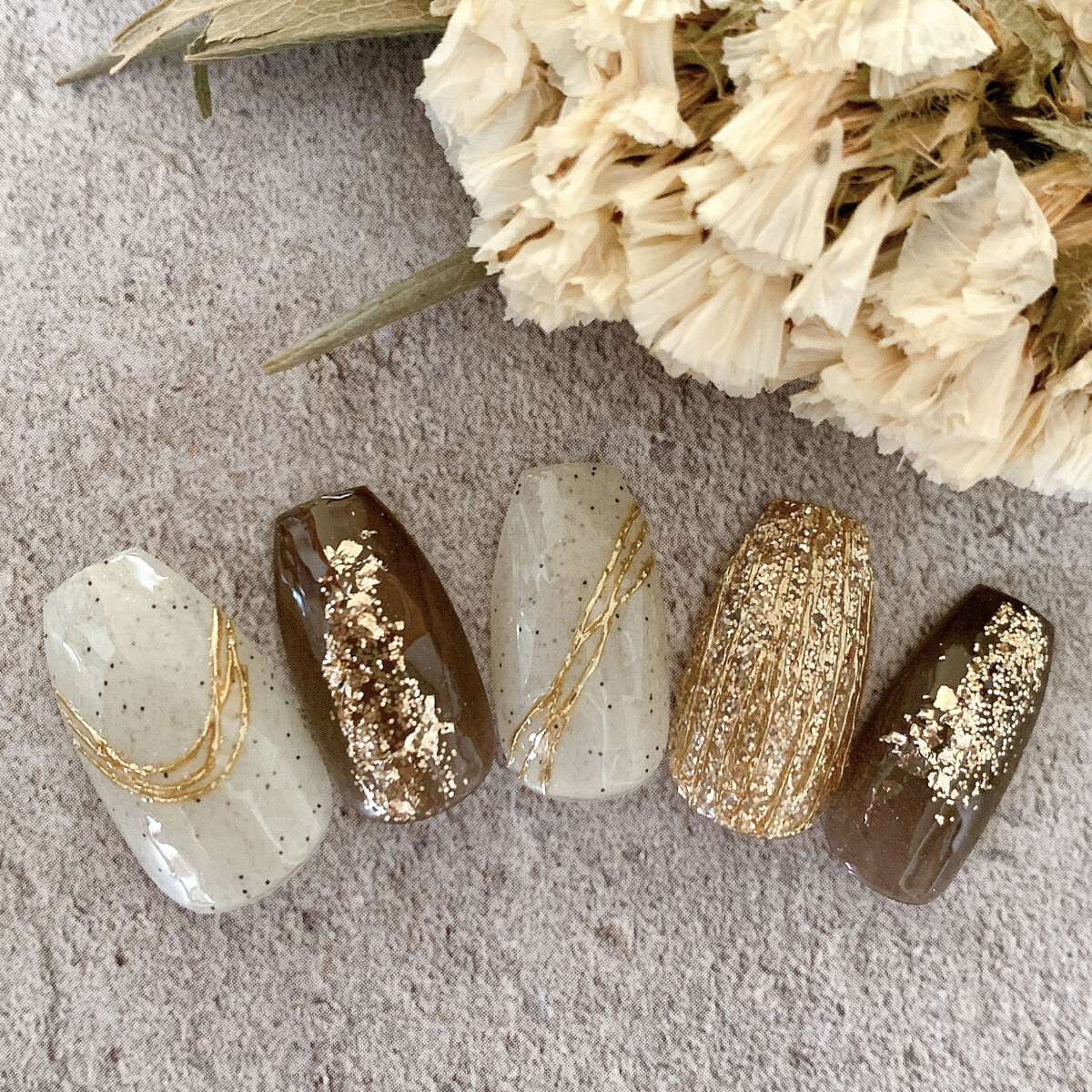ブラウンレッドはシアーカラーなので、ニュアンスにとても使いやすい❣️ グレージュを塗り硬化をせずに、ブラウンレッドを刷毛でさーっと塗るだけで簡単に模様が出来ちゃいます✨ 刷毛圧をかけずに、軽くジェルの上澄みだけを移動させるような感じで塗るのがポイントです🥰