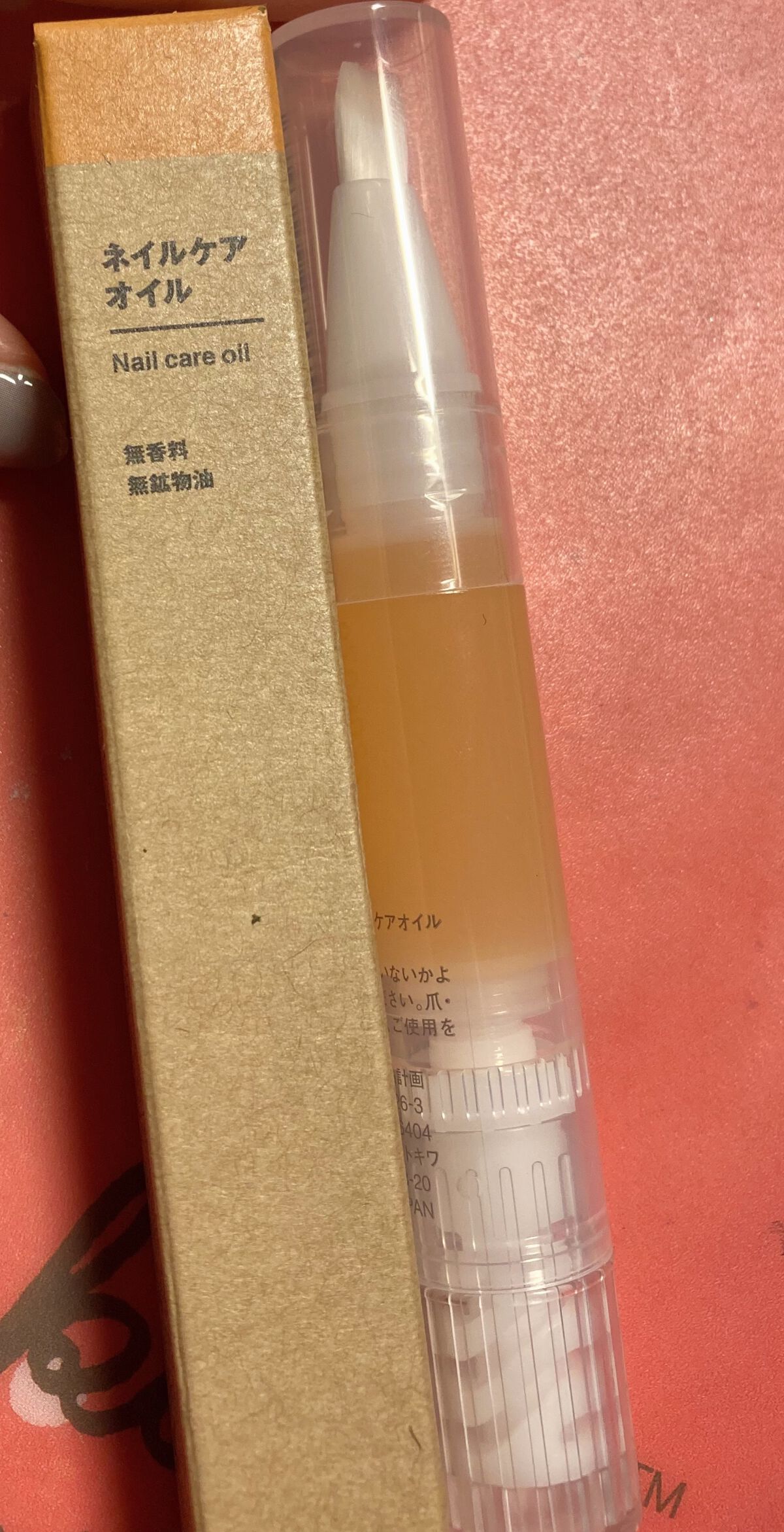 無印良品 ネイルケアオイル 正直可もなく不可もなくなのですが、ブラシが特徴的かなと思ったのが印象的⸝⋆ ネイルオイルは硬めのテクスチャなのですが、筆の真ん中に出てくるため一度馴染ませてからキューティクル側に塗布する必要があります。 とはいえベタつきも嫌な香りもなく、買いやすさで言うとズボラさんには向いているかもしれません。