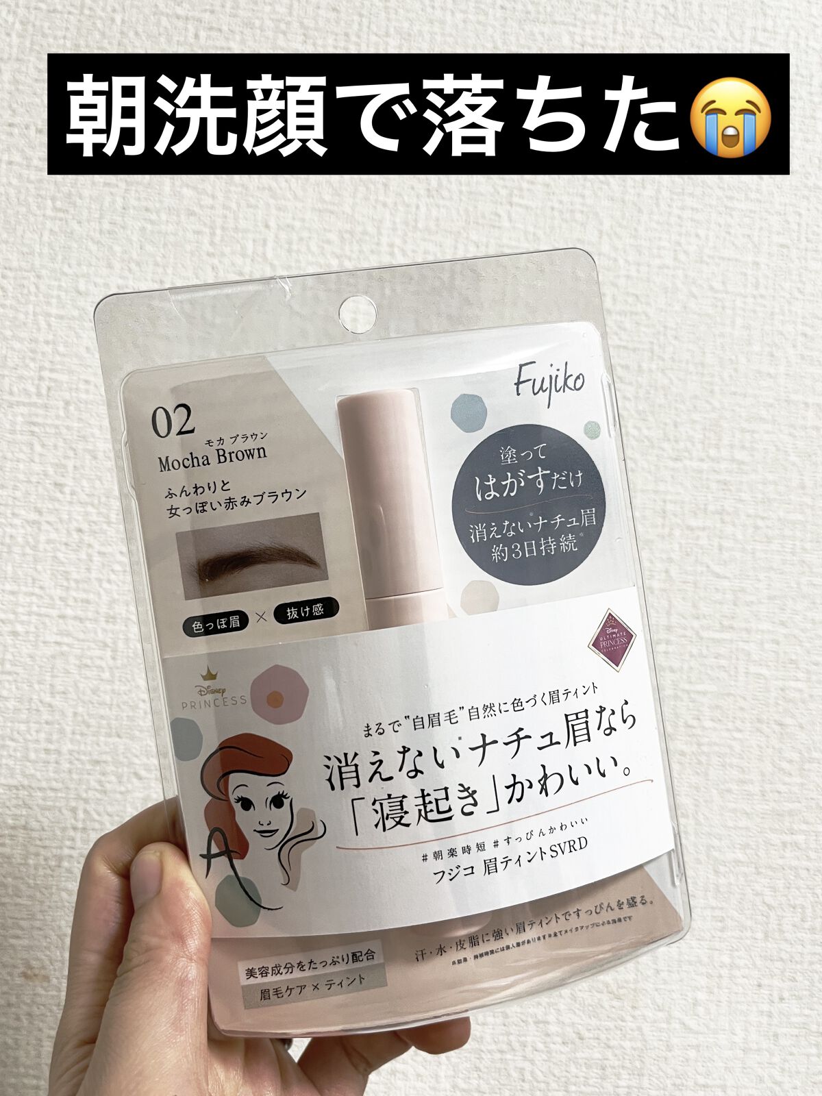 ちょっとの部分使いで劇的時短& 塗ってはがすだけFujikoの #フジコ眉ティントSVR 初代からずっと愛用中で01 ショコラブラウンは特に好きなカラー!落ち着いた深みのあるカラー。 斜めカットのなぎなた型ブラシなので眉尻もすごく塗りやすいよ!迷わずワンストロークで思い切って塗るってはみ出しても乾く前に拭って修正しちゃえばOK!