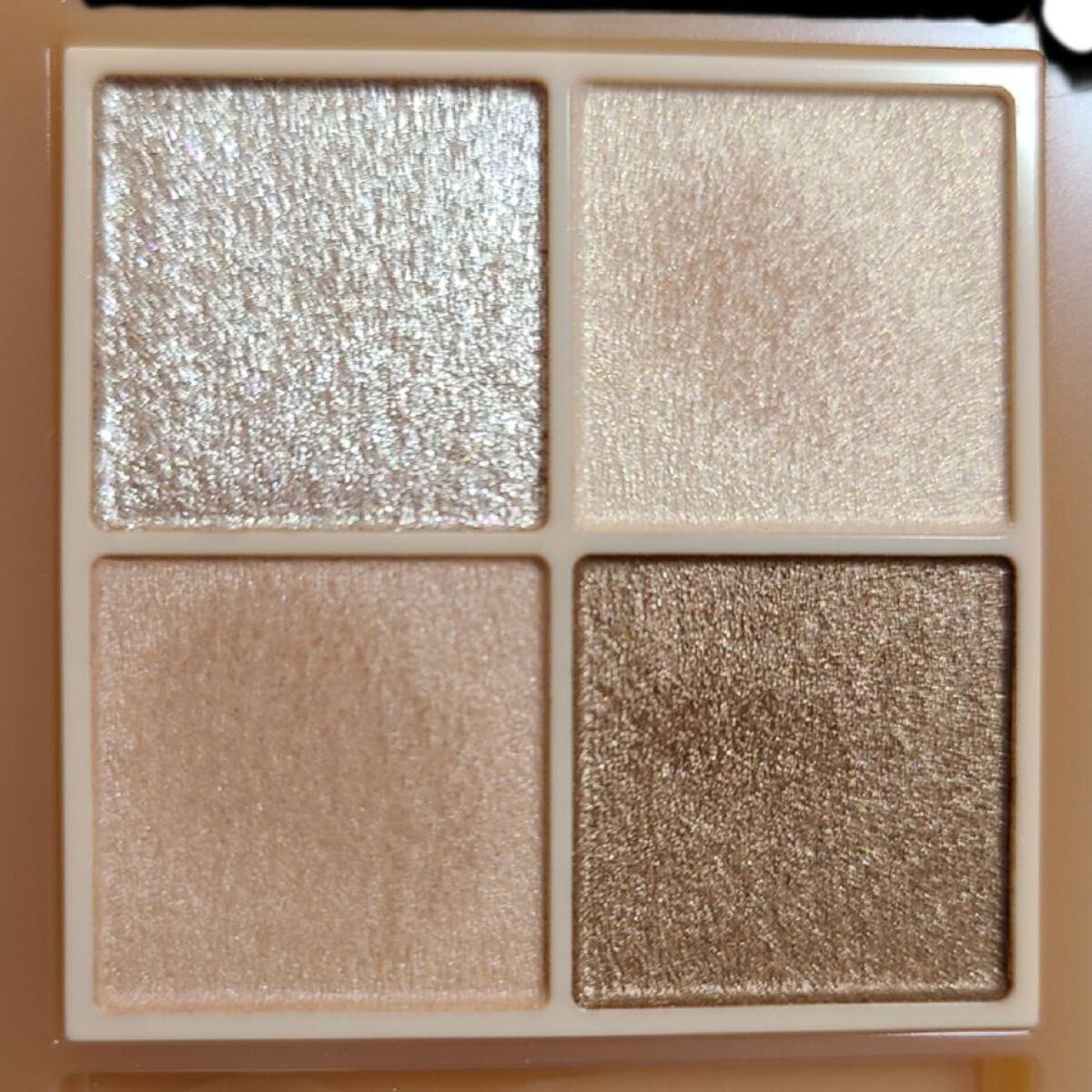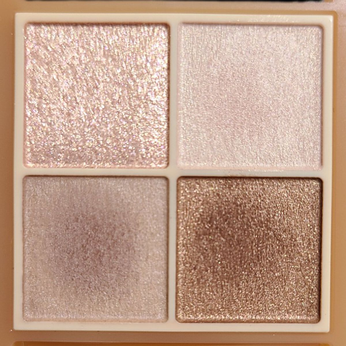 - ラメ・パール・マット3質感の4色アイシャドウ。 肌馴染みの良いベージュを基調としたカラー。ラメ・パール・マットの3質感を重ねて、自然にまぶたを強調し奥行のある大きな目元へ。 しっとり溶け込むような柔らかなパウダーなので、スルスル伸びてまぶたにピタッと密着。保湿成分(スクワラン・ホホバ種子油)配合。